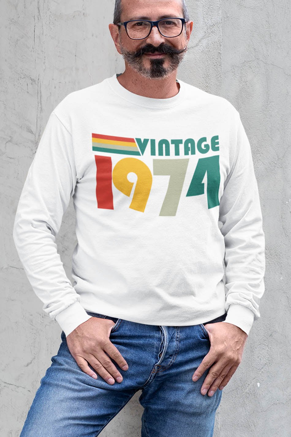 Celebrate a milestone birthday with our 50th Birthday Gifts 2024 Vintage 1974 Sweatshirt. Made from soft, vintage-inspired material, this sweatshirt is the perfect gift for anyone born in 1974. Show off their unique birth year with this timeless and comfortable garment.