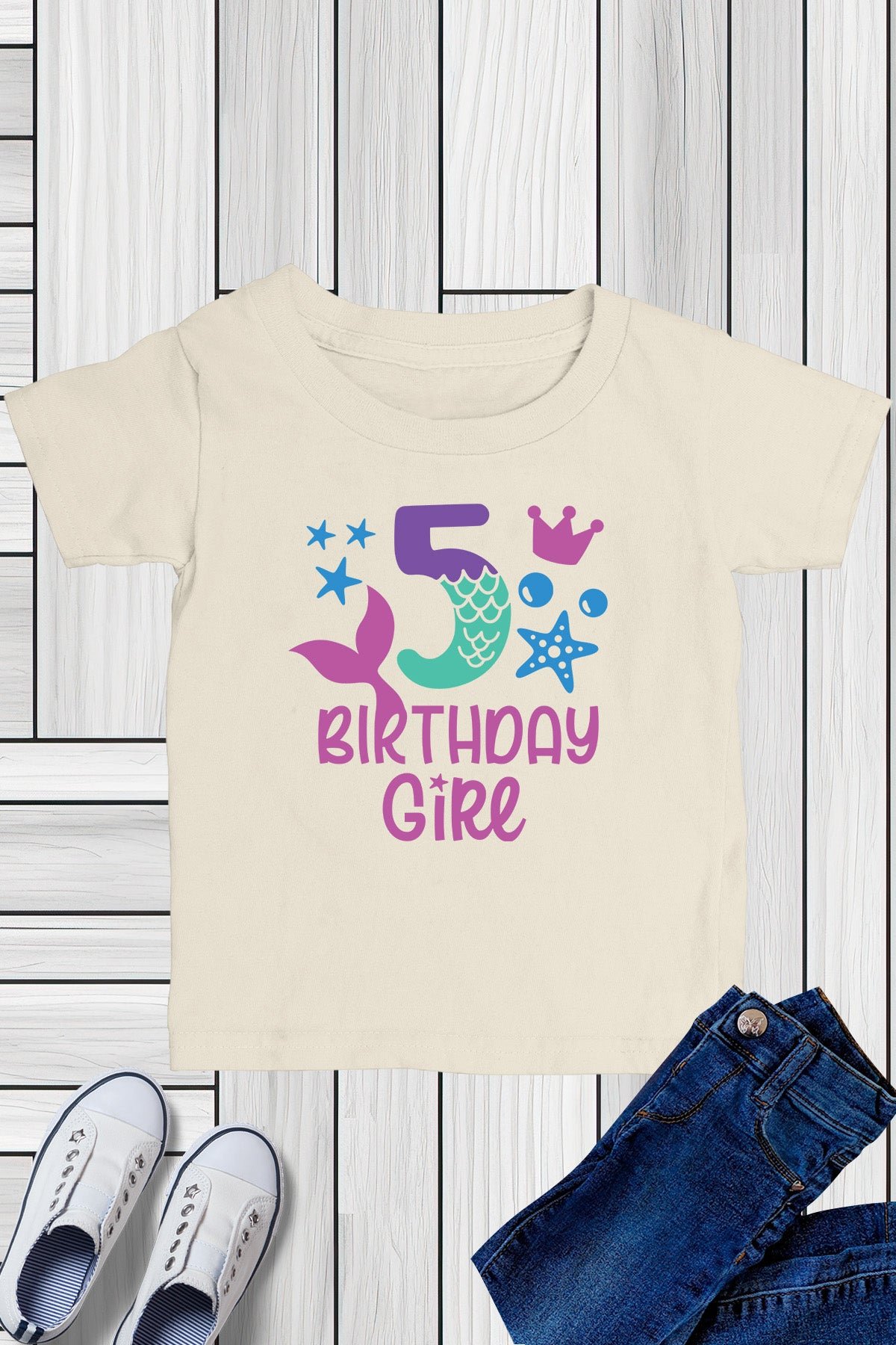 Celebrate your little girl’s 5th birthday in style with our 5th Birthday Girl Mermaid T Shirts. Made with high-quality materials, these t-shirts are perfect for any mermaid-loving birthday girl. Let her shine and feel like a magical mermaid on her special day!