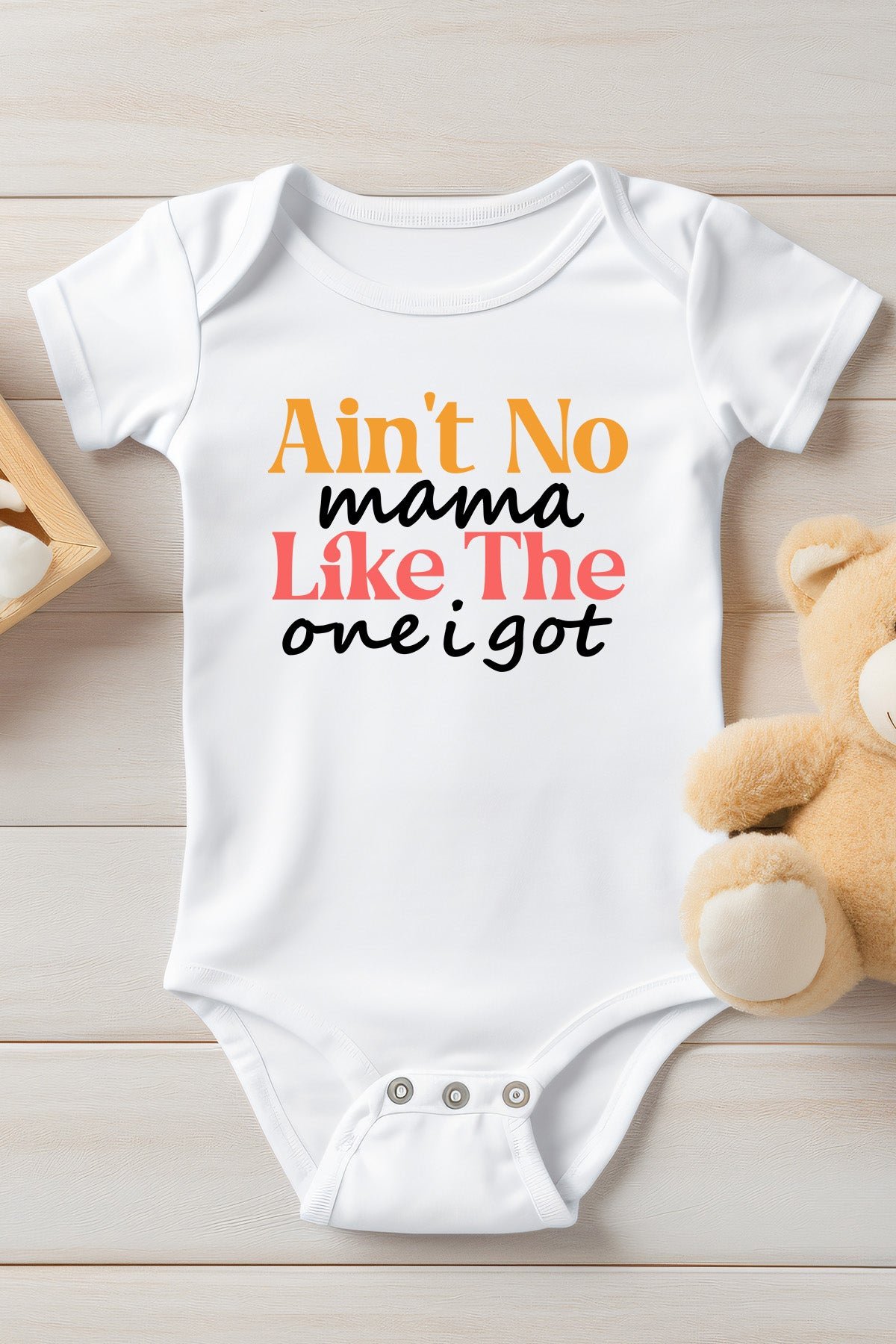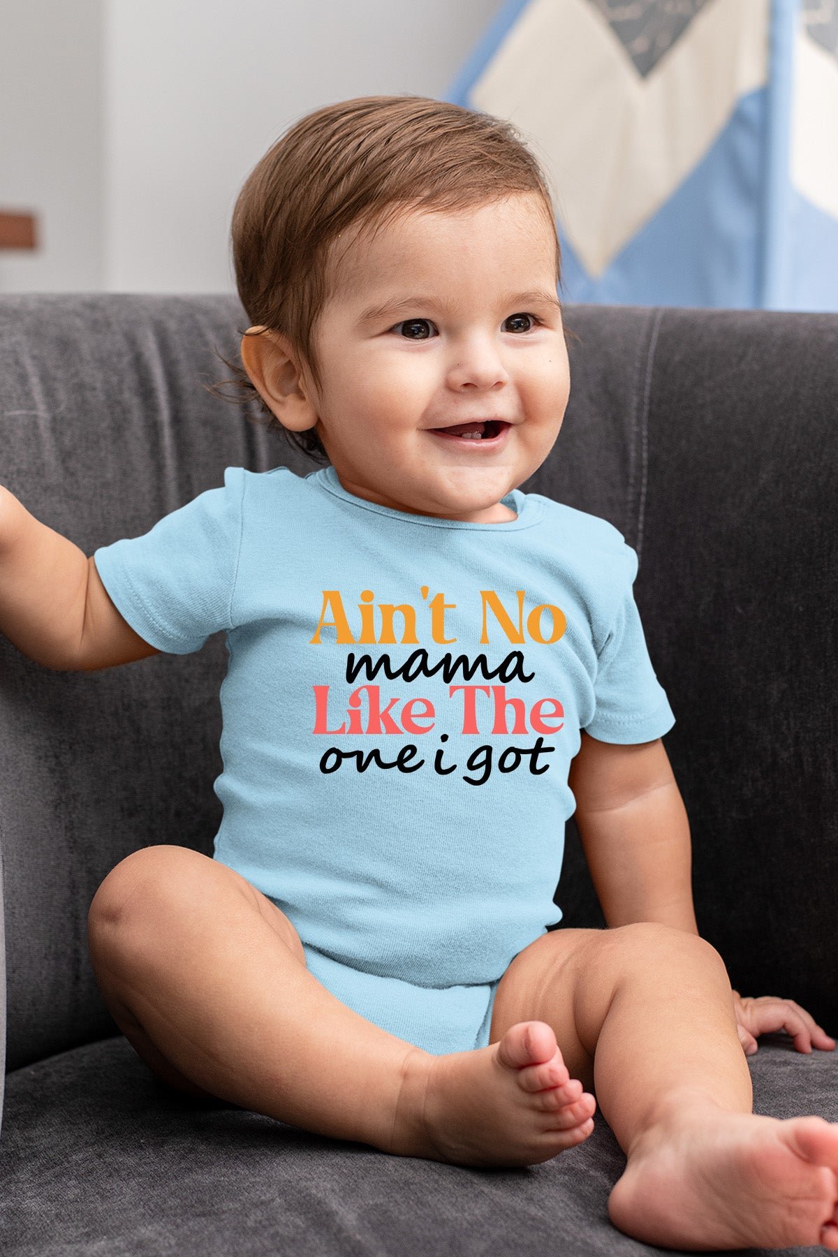 This adorable “Ain’t Mama Like The One I Got” baby onesie is a must-have for any little one. Made with soft and comfortable fabric, it features a playful design that celebrates the unique bond between a baby and their mama. Perfect for everyday wear or as a thoughtful gift for new parents.