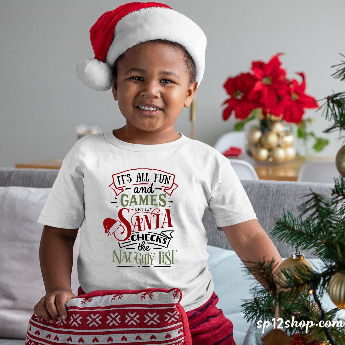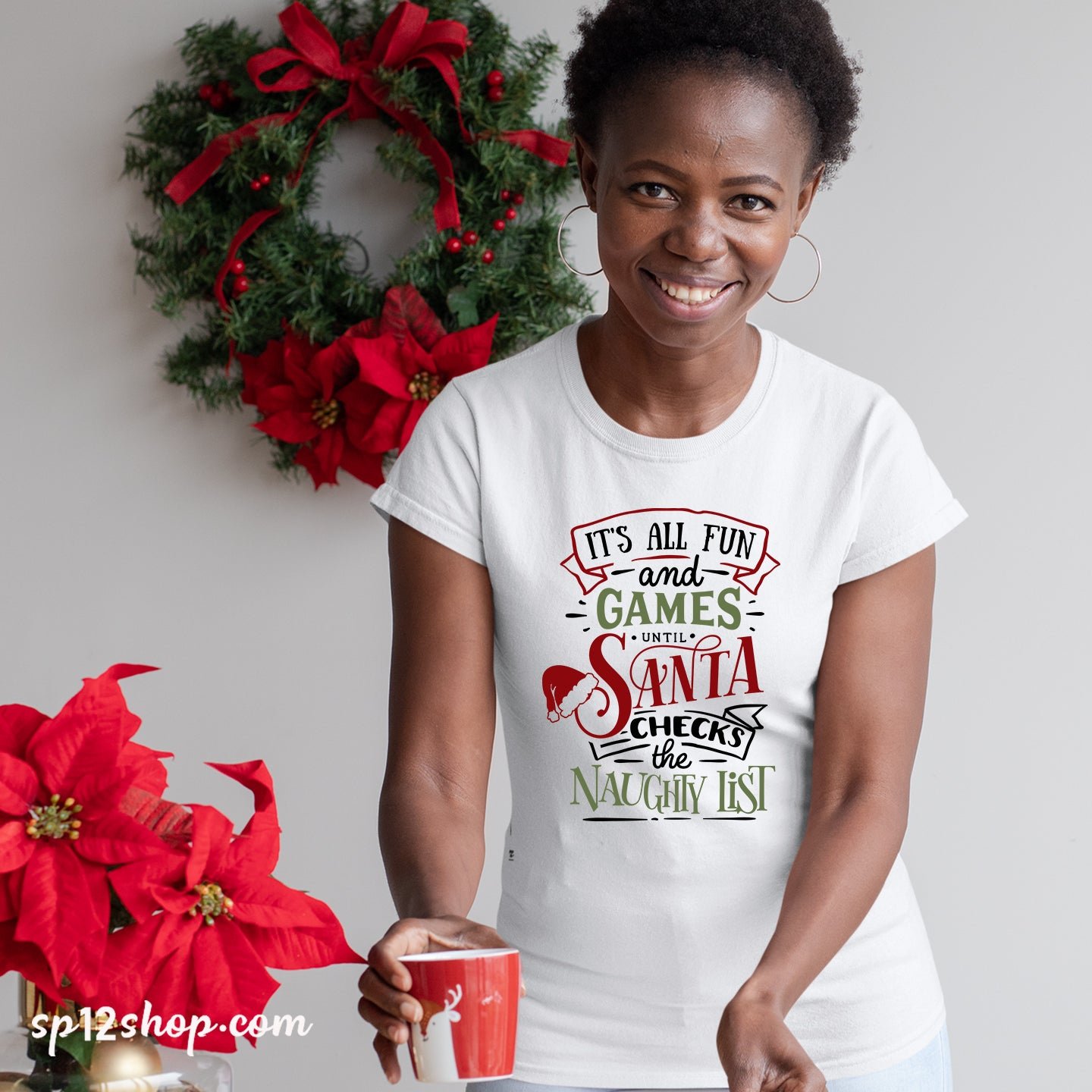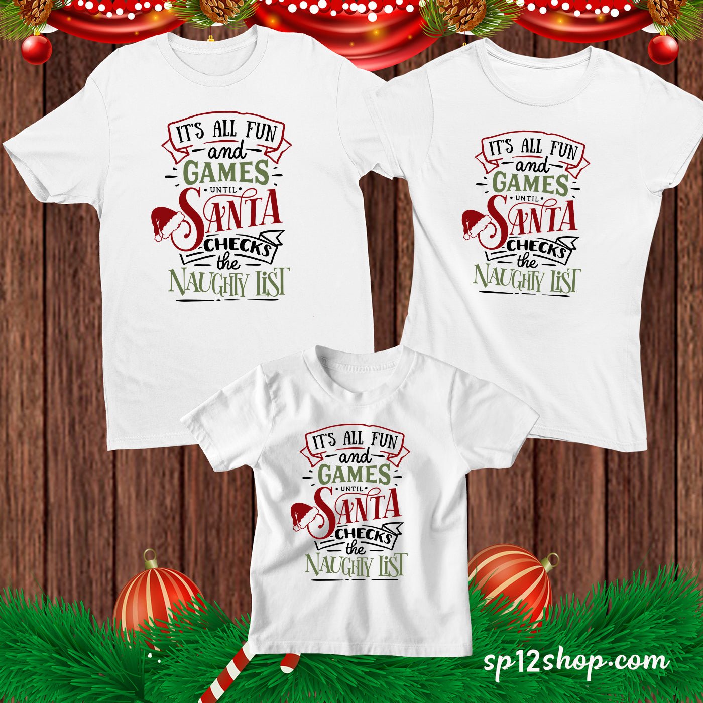 Funny Christmas T shirt All Fun And Games Until Santa Check Naughty Tee