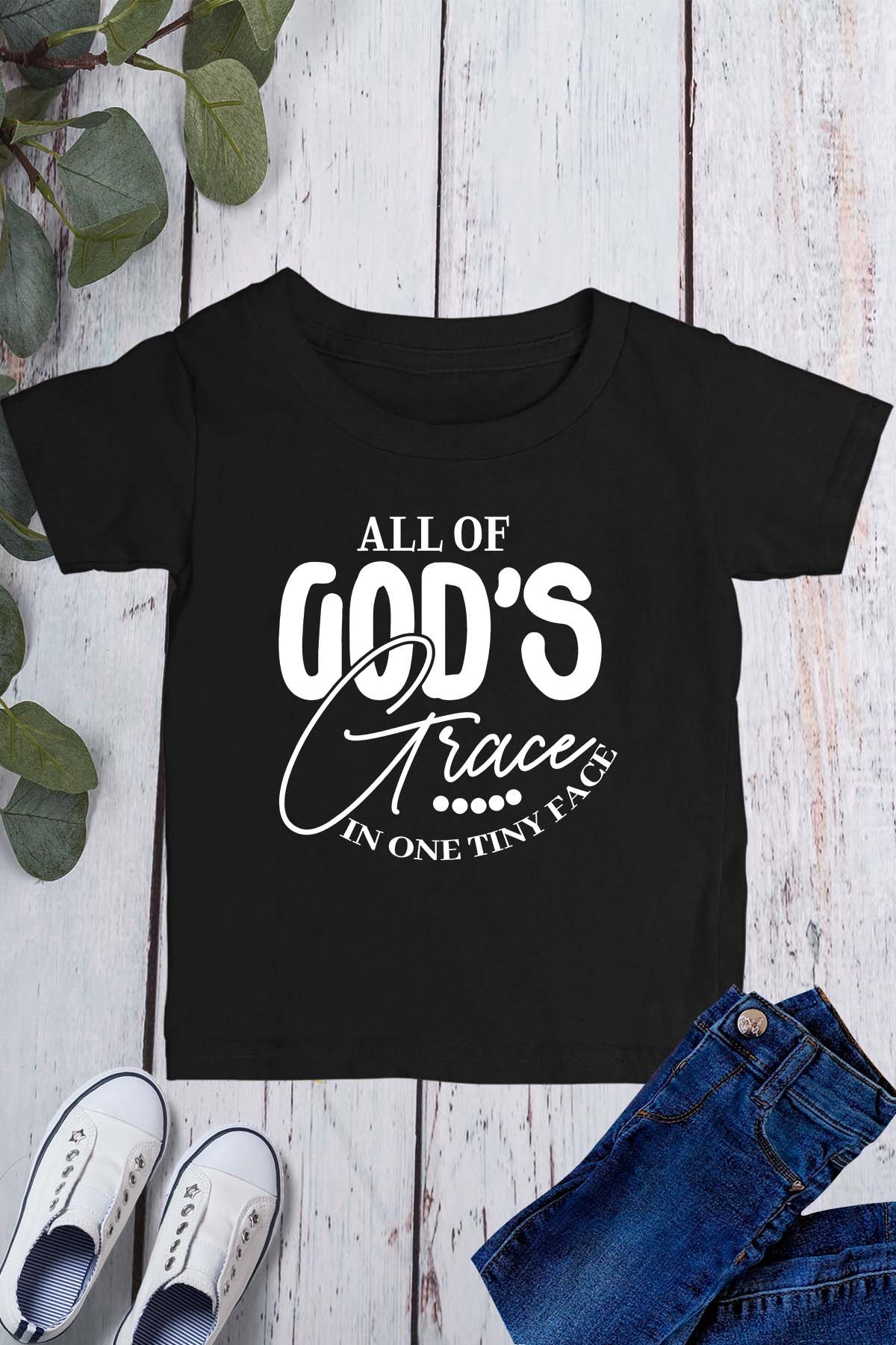 Discover the perfect shirt for your little one with our All of God’s Grace In One Tiny face Kids Shirt. Made with high-quality materials and featuring a beautiful design, this shirt reminds us of the precious gift of life and the grace that comes along with it. Let your child wear their faith with this unique and comfortable shirt.