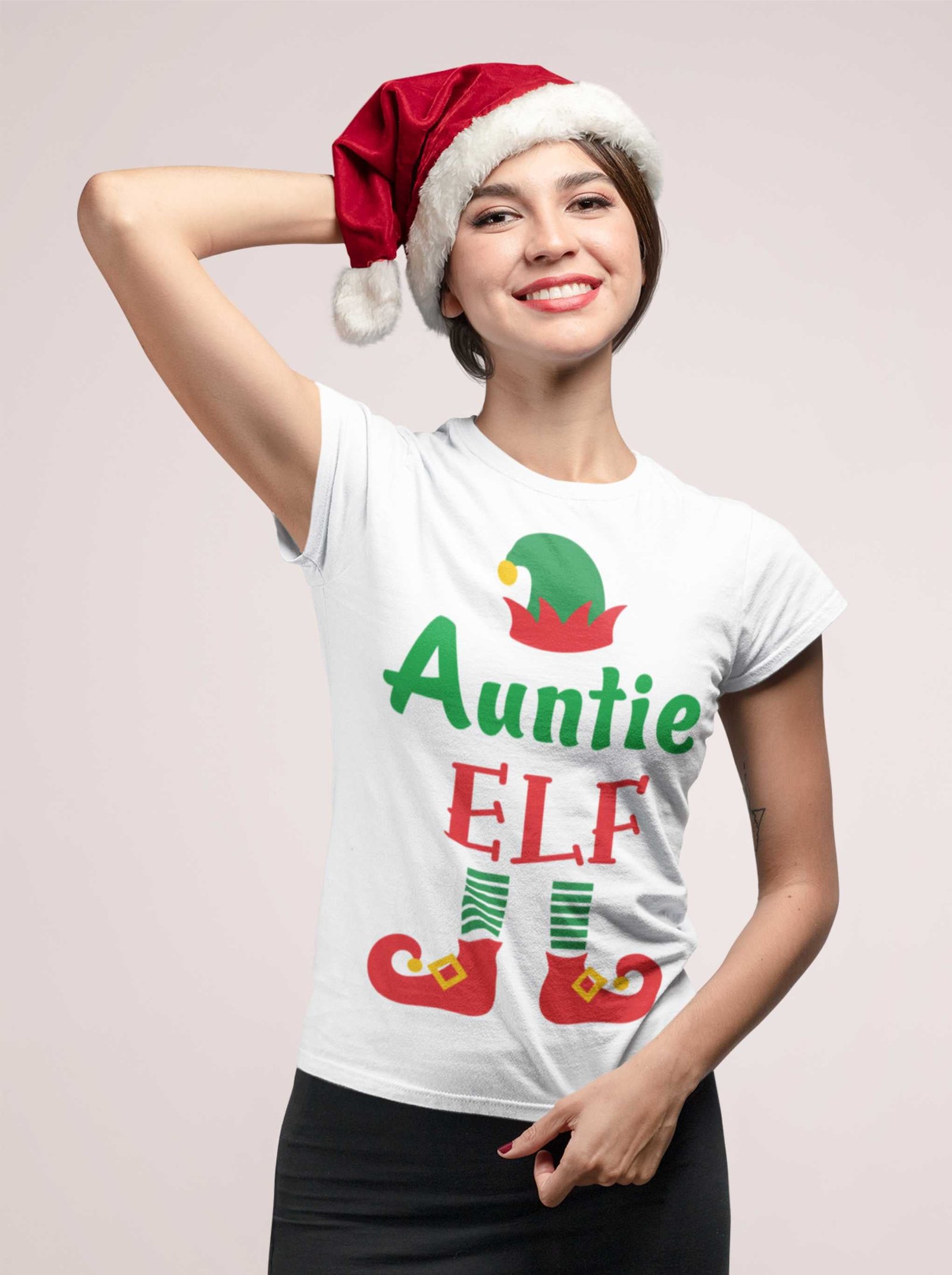 Auntie Elf Family Christmas T shirt Funny secret Santa Claus gift Tee Outfit
