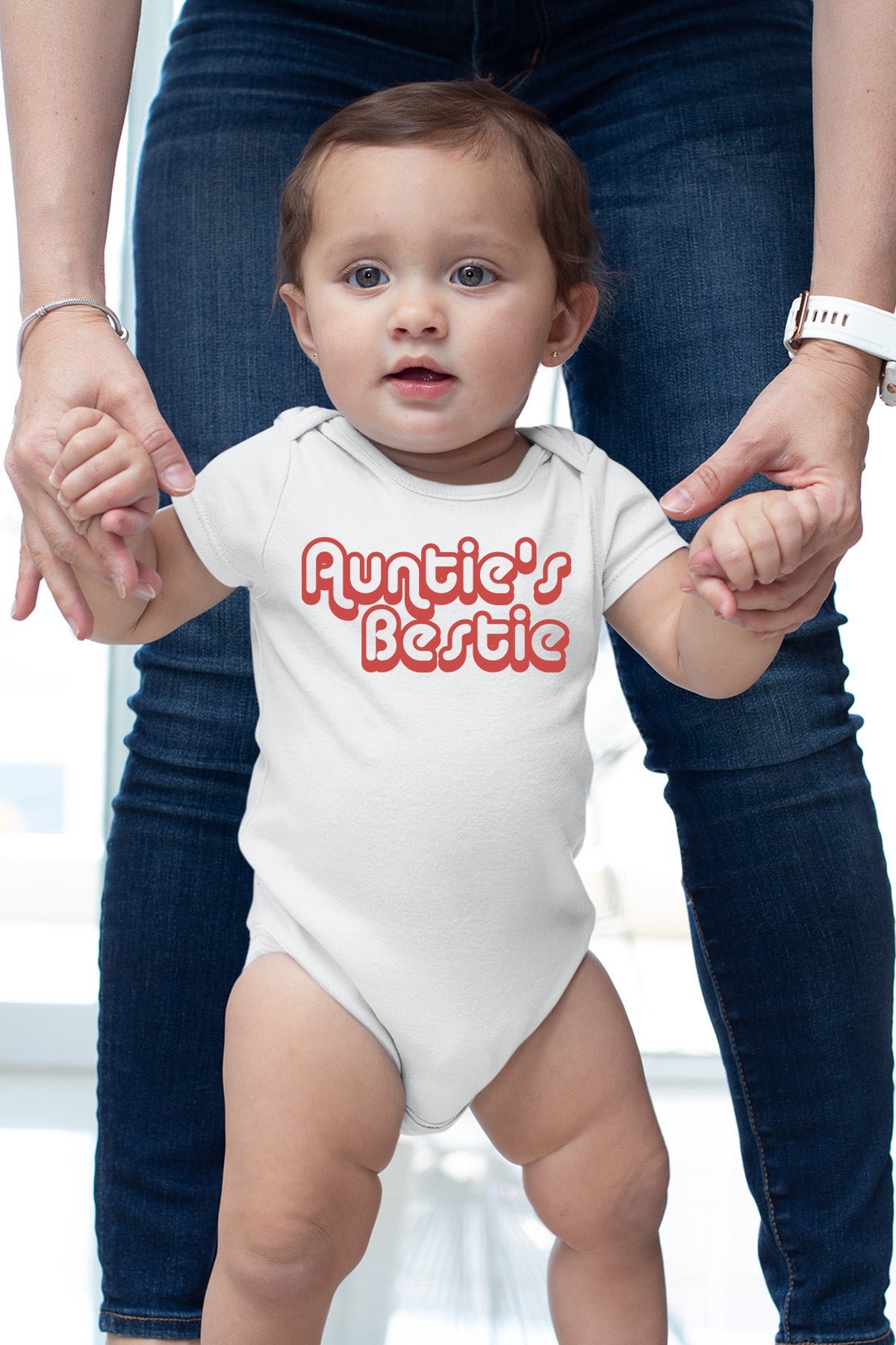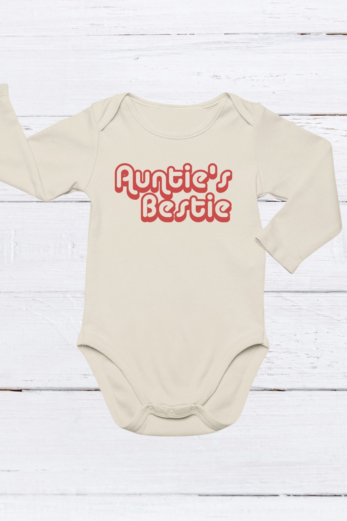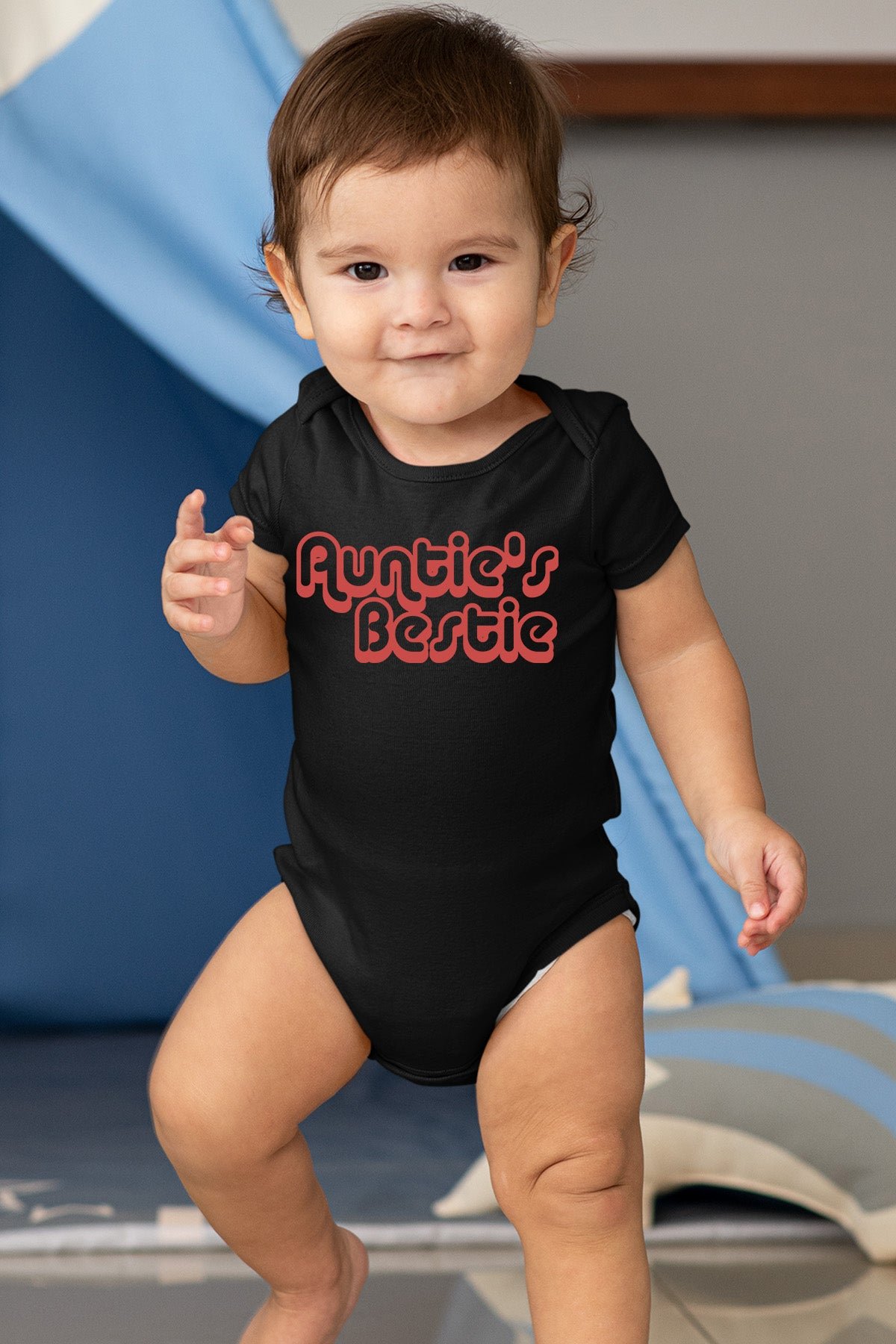 Featuring a cute and fun design, the Auntie’s Bestie Baby Bodysuit is the perfect choice for your little one’s wardrobe. Made with soft and comfortable fabric, this bodysuit is sure to keep your baby comfortable and stylish. Show off their special bond with their auntie while also providing them with the best in comfort.