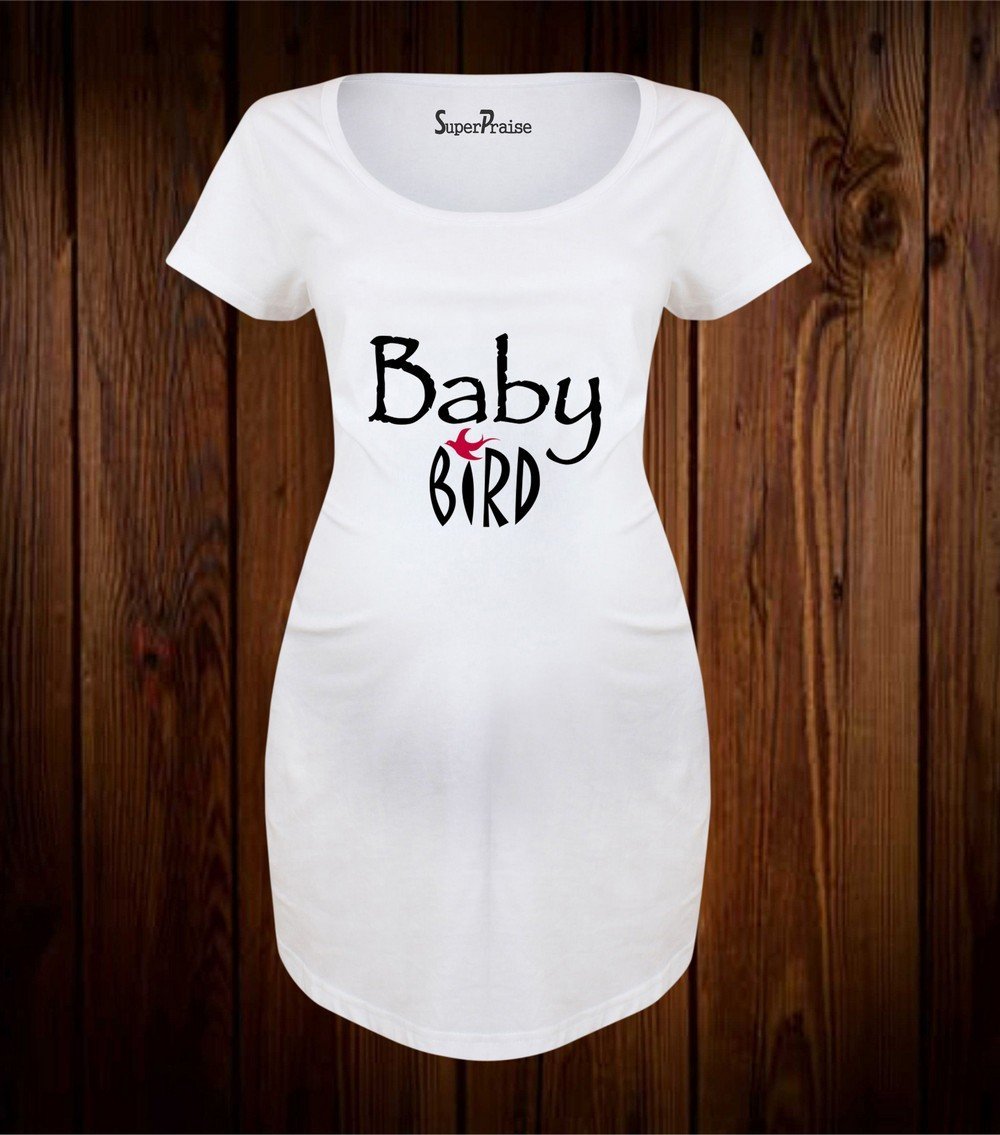 Baby Bird Maternity T Shirt is cool stylish tops to embrace motherhood. This funny maternity tshirts are made with quality cotton and side rushed to fit growing bump and stylish comfy wear during pregnancy.