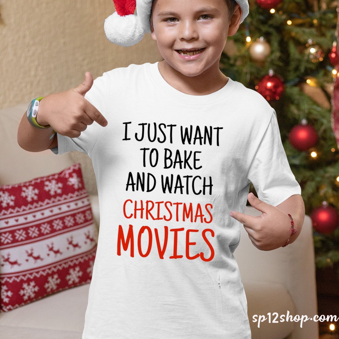 Bake And Watch Christmas Movies Kids Family T Shirt Tee