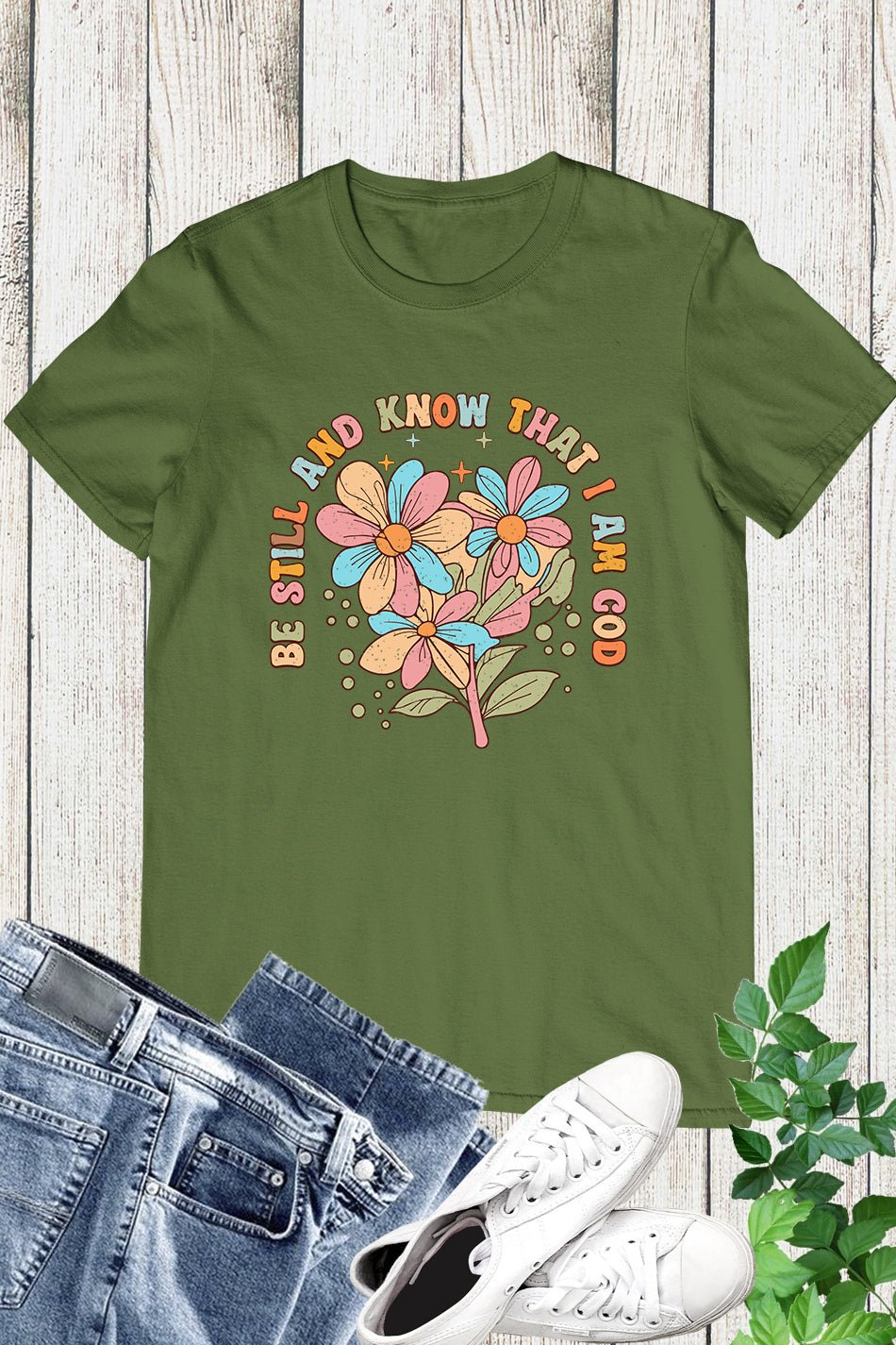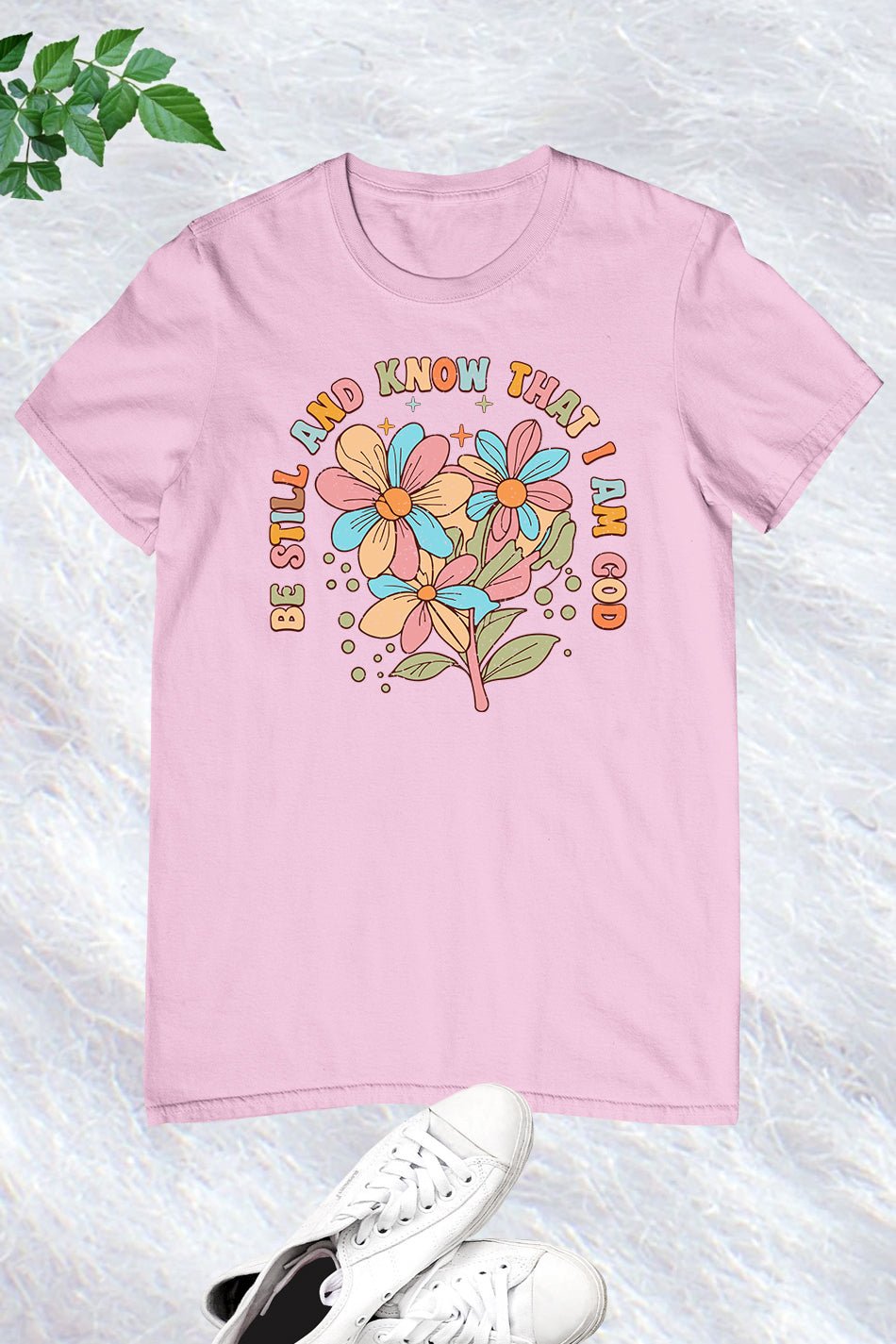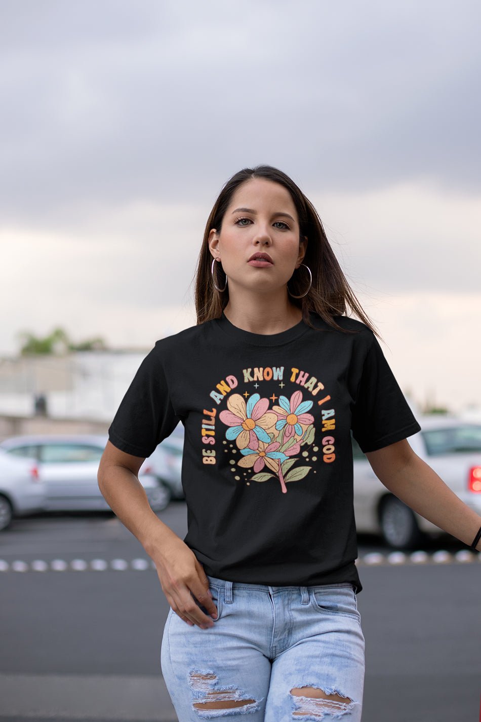 This Christian t-shirt features the phrase “Be Still and Know That I’m God” in a simple design. The message serves as a reminder to find peace and strength in faith. Made from high-quality materials, this shirt is both comfortable and meaningful for everyday wear.