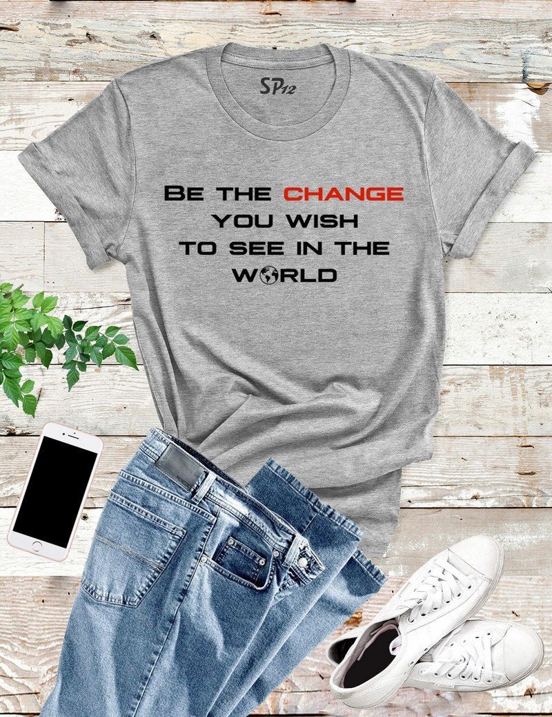 Be The change You Wish To See In the World T Shirt is printed with the message Wish To See In the World. Fan of motivational quotes or funny memes then you will like our slogan tshirt. These soft cotton tshirts are stylish and comfy. Funny t shirts that can give someone a laugh or sparkling smile and happy time. This slogan t shirt will get an attention and compliment.