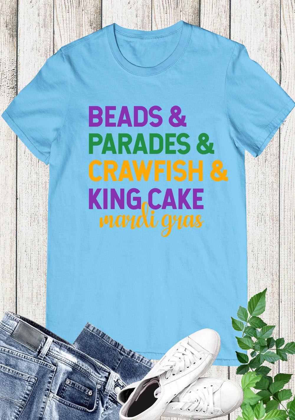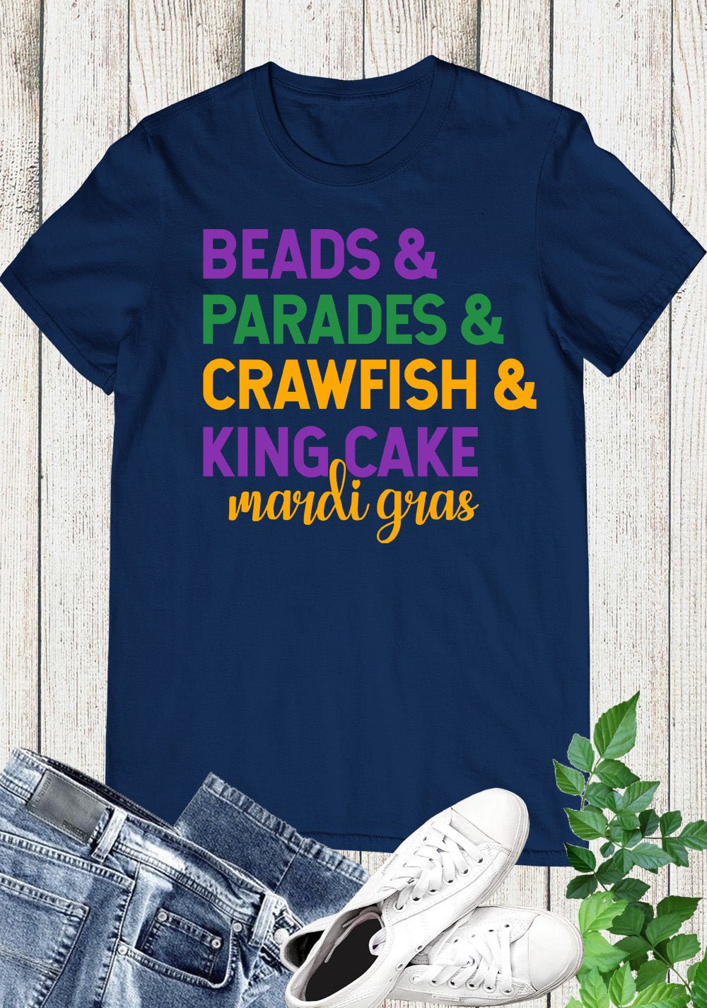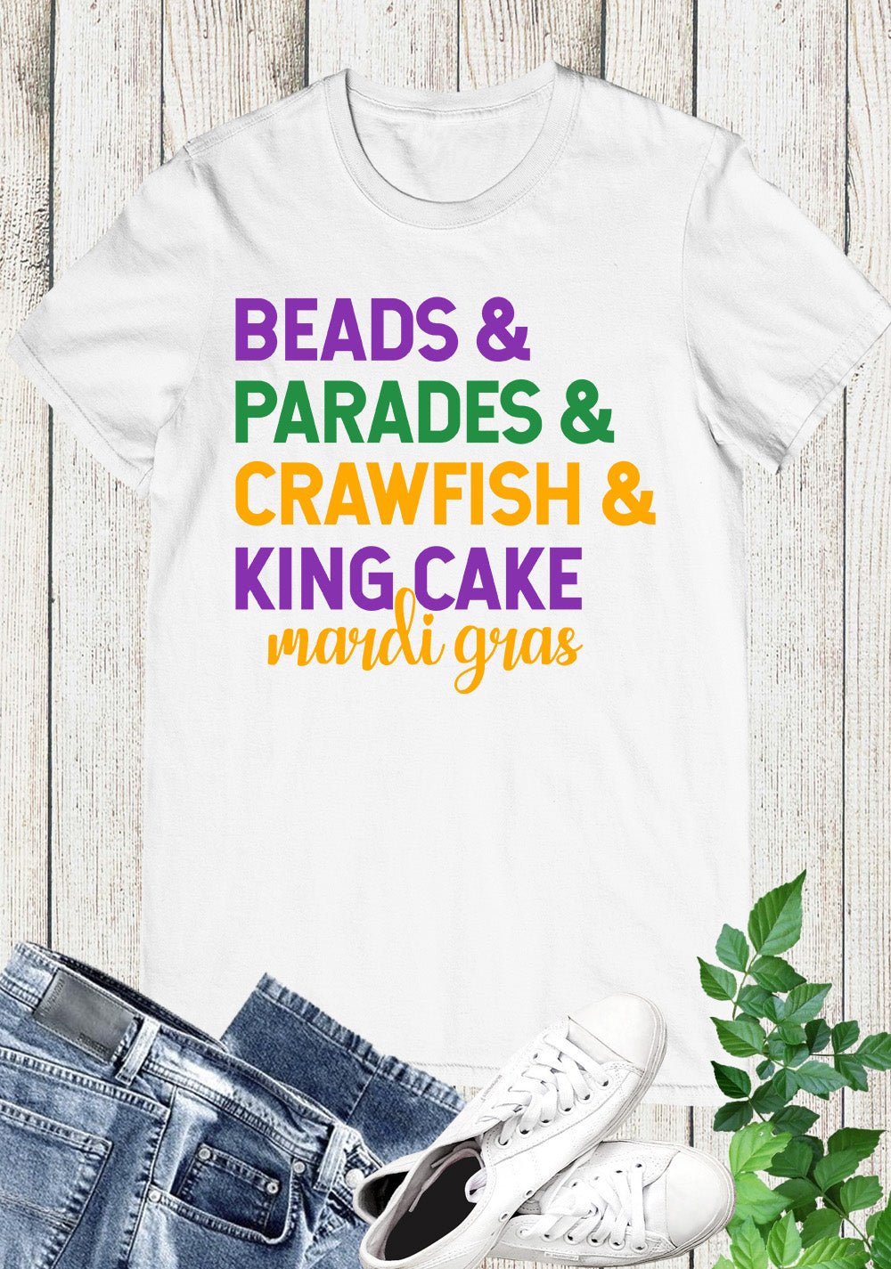 Celebrate Mardi Gras in style with our Beads Parades King Cake Crawfish shirt! Show off your love for the festivities with this vibrant and eye-catching design. Be the envy of any parade with this unique and festive shirt!