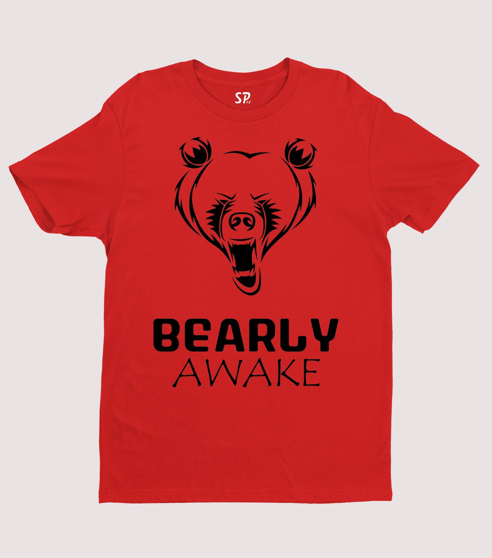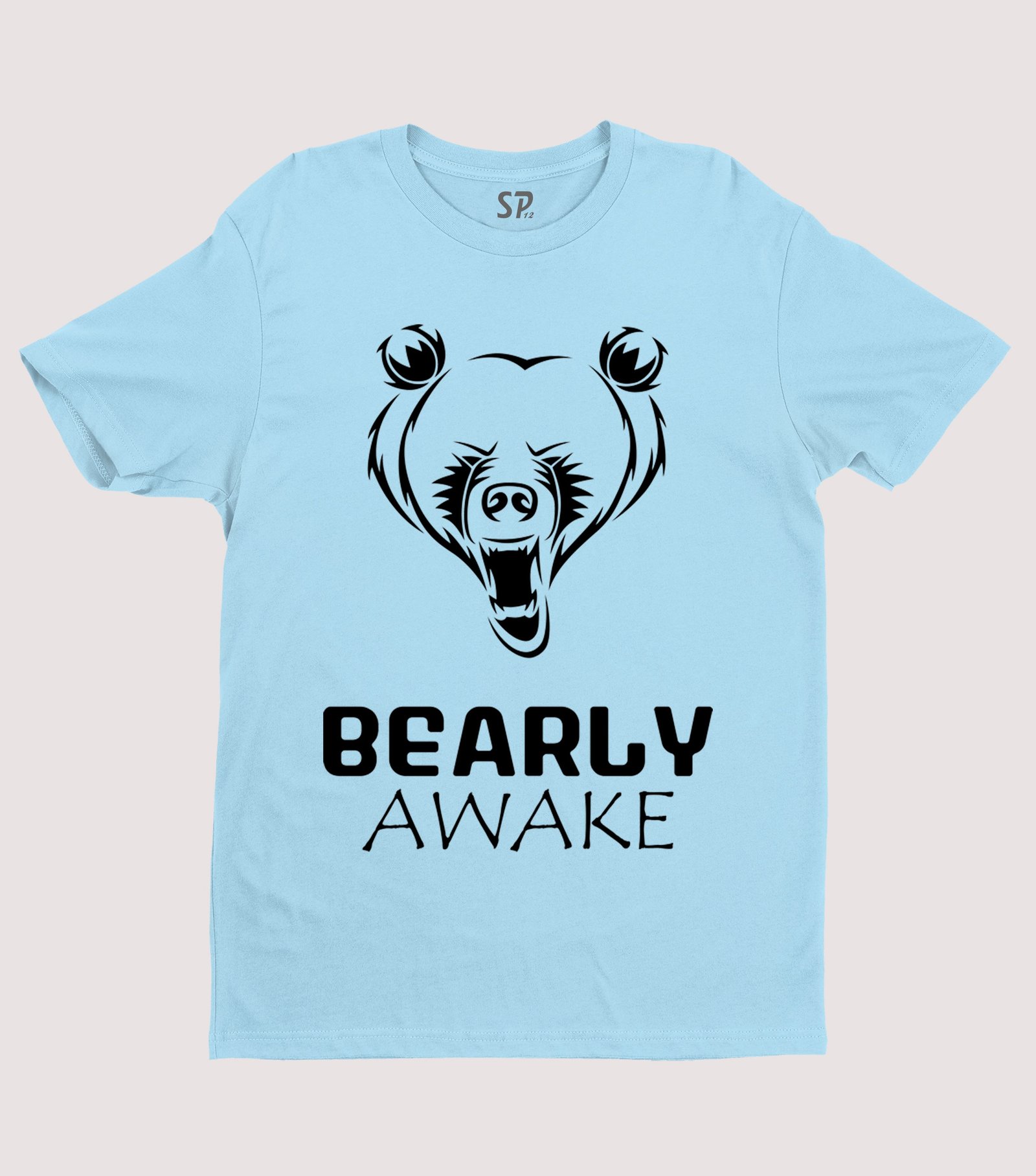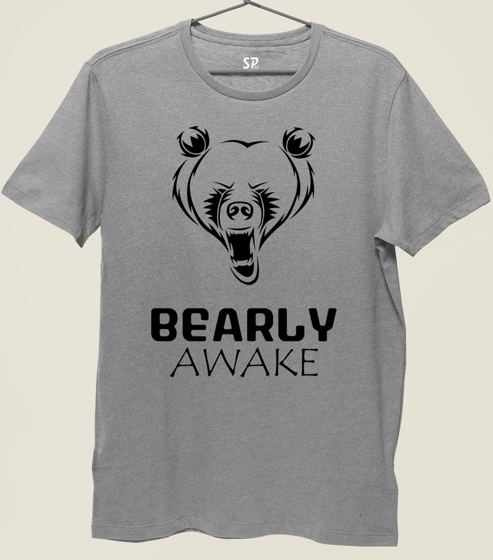 Bearly Awake Angry Bear Character Slogan T shirt