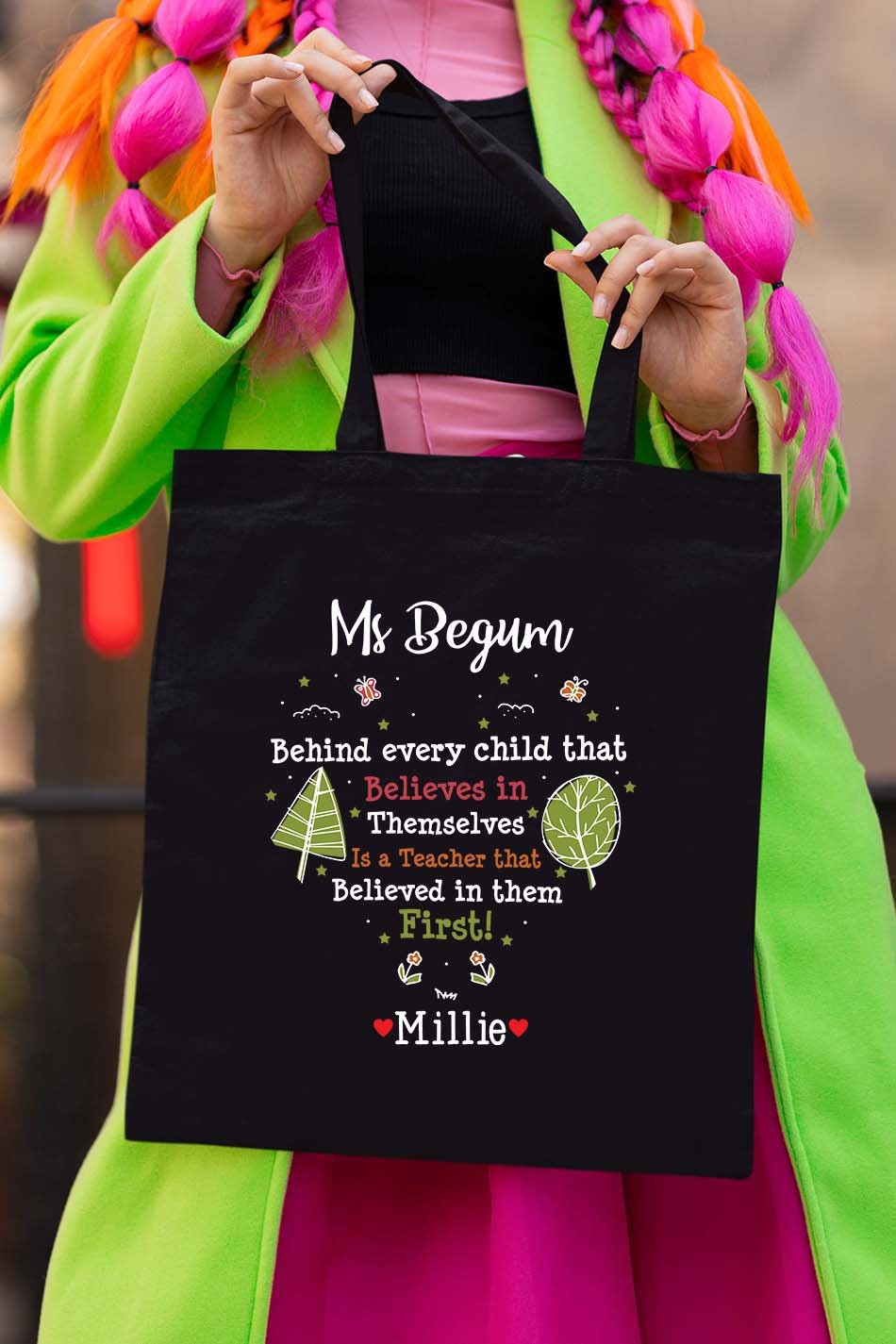 This tote bag is a reminder of the valuable role teachers play in shaping confident and self-believing children. Carry books, supplies, or anything else in this spacious and sturdy tote that supports the unsung heroes of education. Show your appreciation with this powerful message on your shoulder.