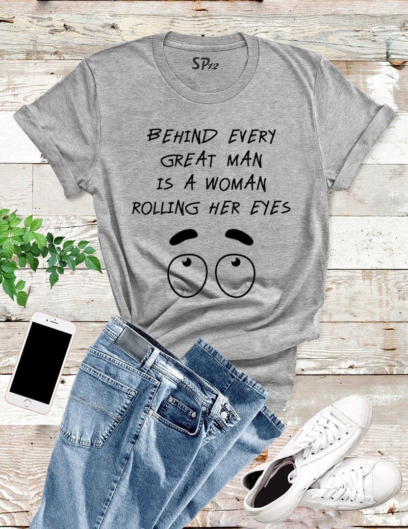 Behind Every Great Man T Shirt is printed with the message Success Inspiration. Fan of motivational quotes or funny memes then you will like our slogan tshirt. These soft cotton tshirts are stylish and comfy. Funny t shirts that can give someone a laugh or sparkling smile and happy time. This slogan t shirt will get an attention and compliment.