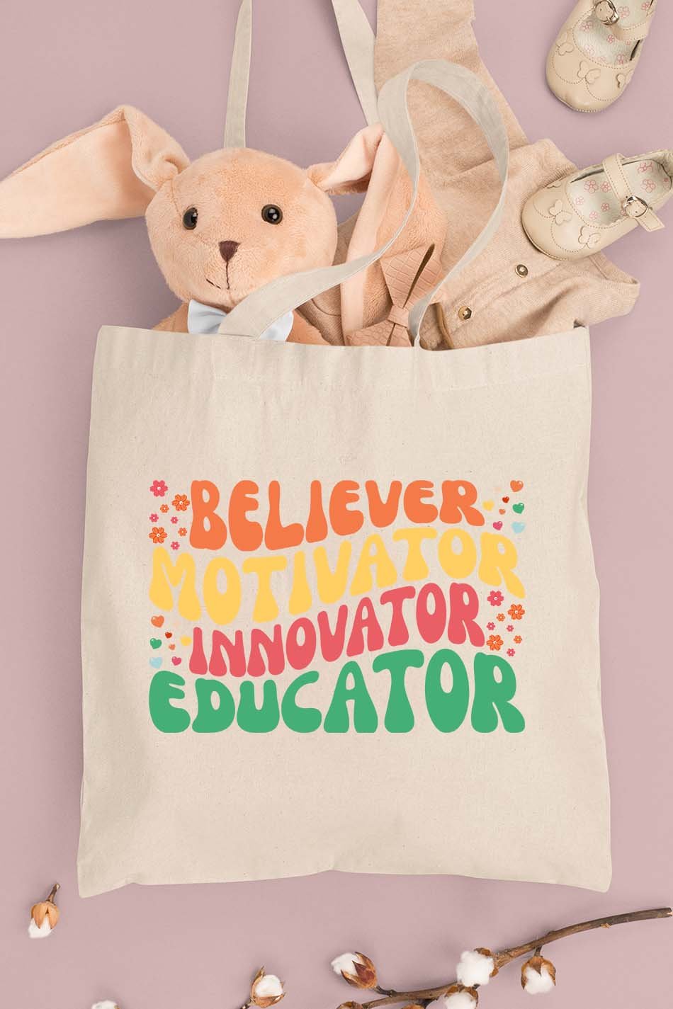 The Believer Motivator Innovation Educator Tote Bag is the perfect accessory for those who inspire and educate. This tote bag is designed for the go-getters, innovators, and educators, with a spacious interior to carry all your essentials. Made from durable materials, it’s the ideal companion for your daily adventures.