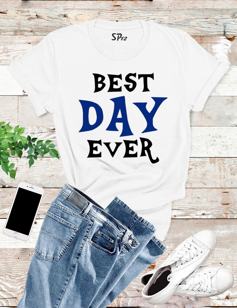 Best Day Ever T Shirt is printed with the message Best Day Ever.Fan of motivational quotes or funny memes then you will like our slogan tshirt. These soft cotton tshirts are stylish and comfy. Funny t shirts that can give someone a laugh or sparkling smile and happy time. This slogan t shirt will get an attention and compliment.
