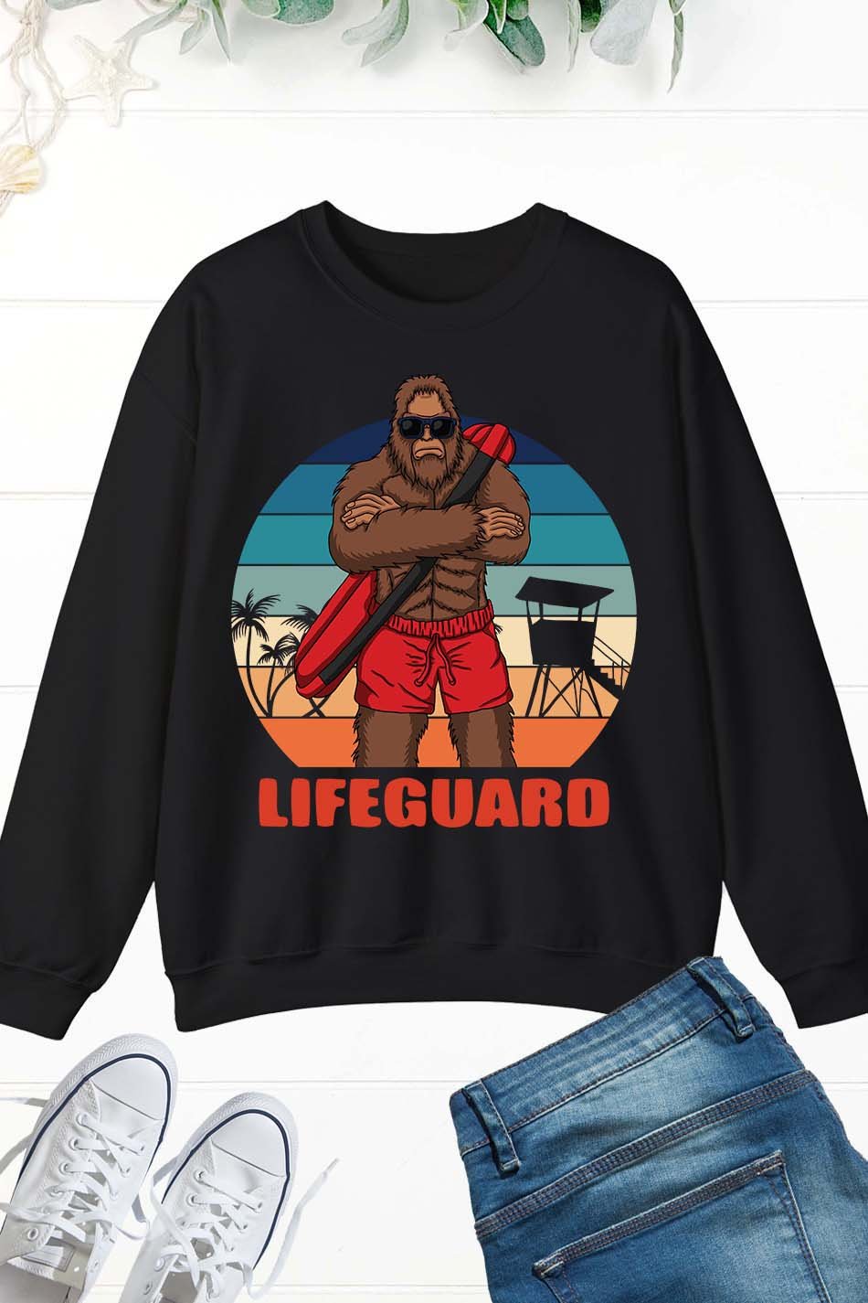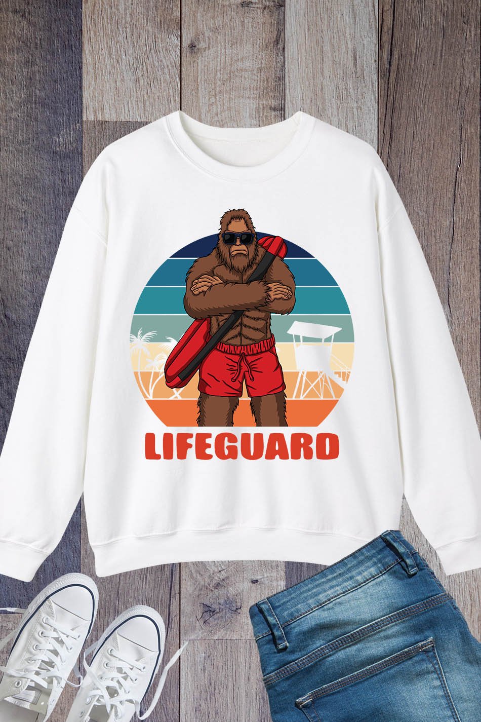 The Bigfoot Lifeguard on the Beach Sweatshirt is a must-have for any fan of cryptid creatures and beach culture. Made from high-quality materials, this sweatshirt features a unique design that showcases Bigfoot in a lifeguard uniform. Stay warm and make a bold statement in this one-of-a-kind sweatshirt.