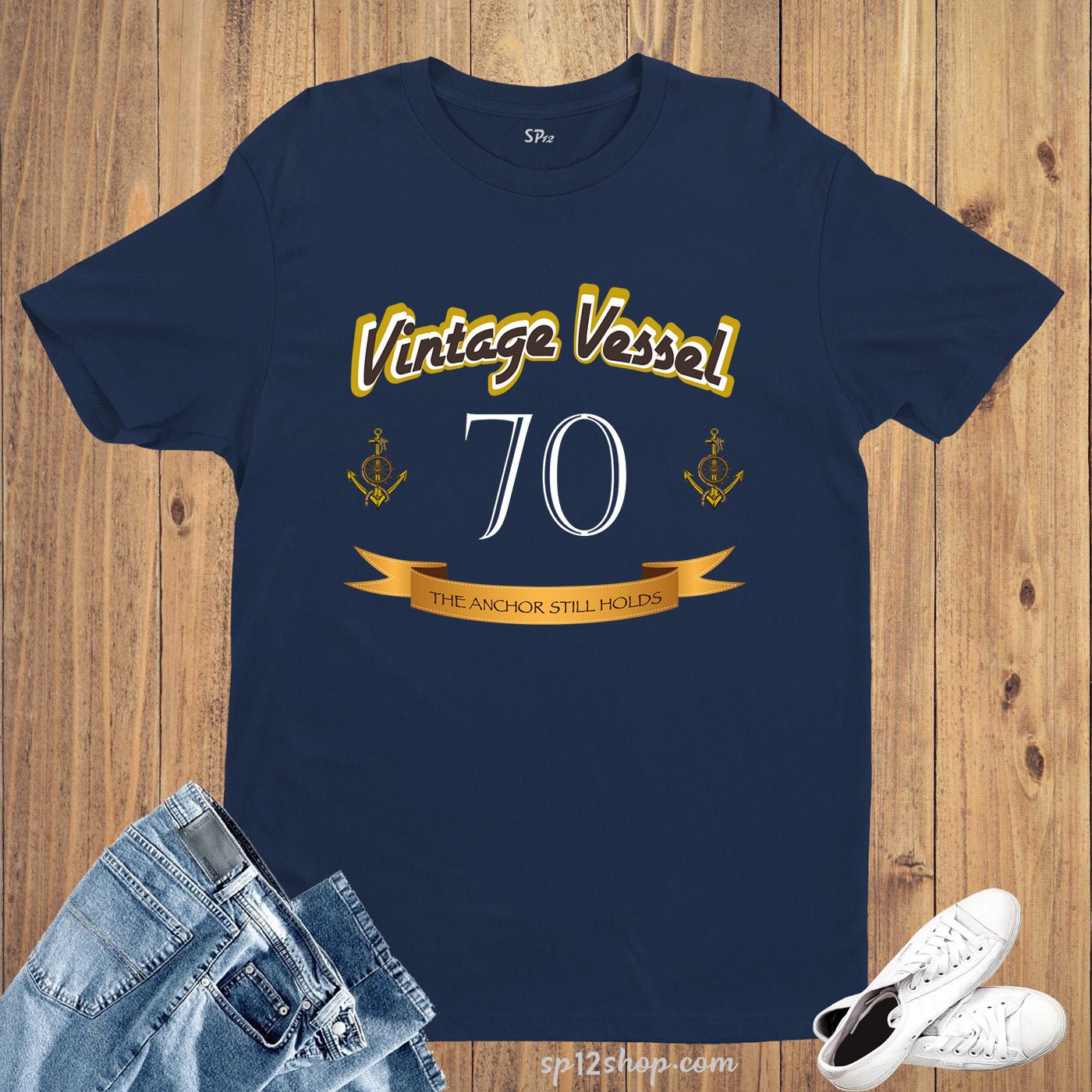 Celebrate your milestone birthday with this vintage-inspired t-shirt. The bold anchor design represents the strength and stability that comes with turning seventy. Made from quality materials, this shirt is not only stylish but also comfortable to wear. Perfect for any birthday celebration!
