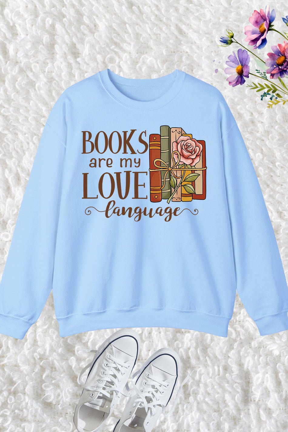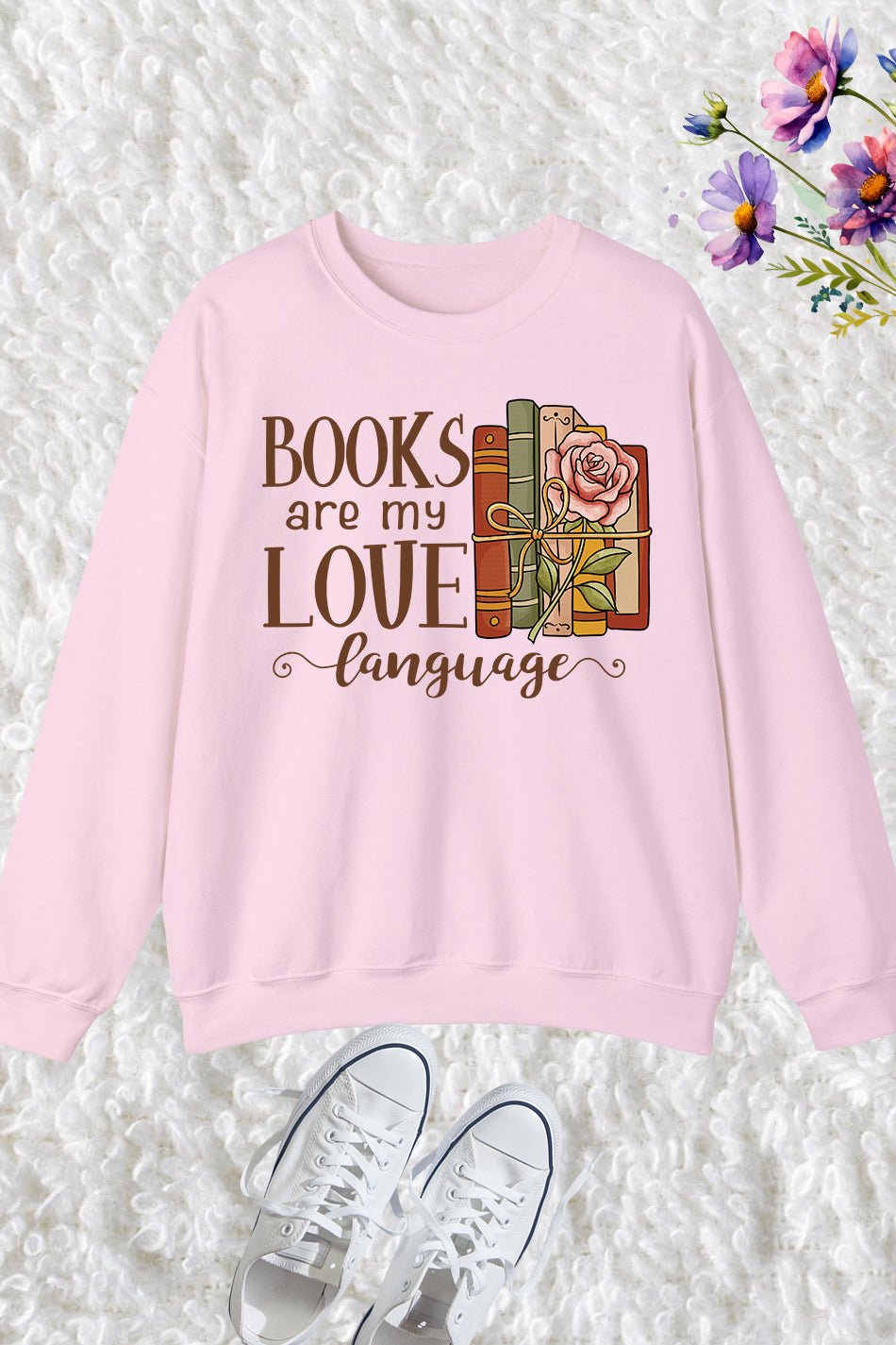 Expertly crafted, our Books Are My Love Language Sweatshirt is designed for book lovers. Made with high-quality materials, this sweatshirt is comfortable and stylish. Let everyone know where your heart truly lies with this unique sweatshirt. Perfect for any cozy reading session or book club meeting.