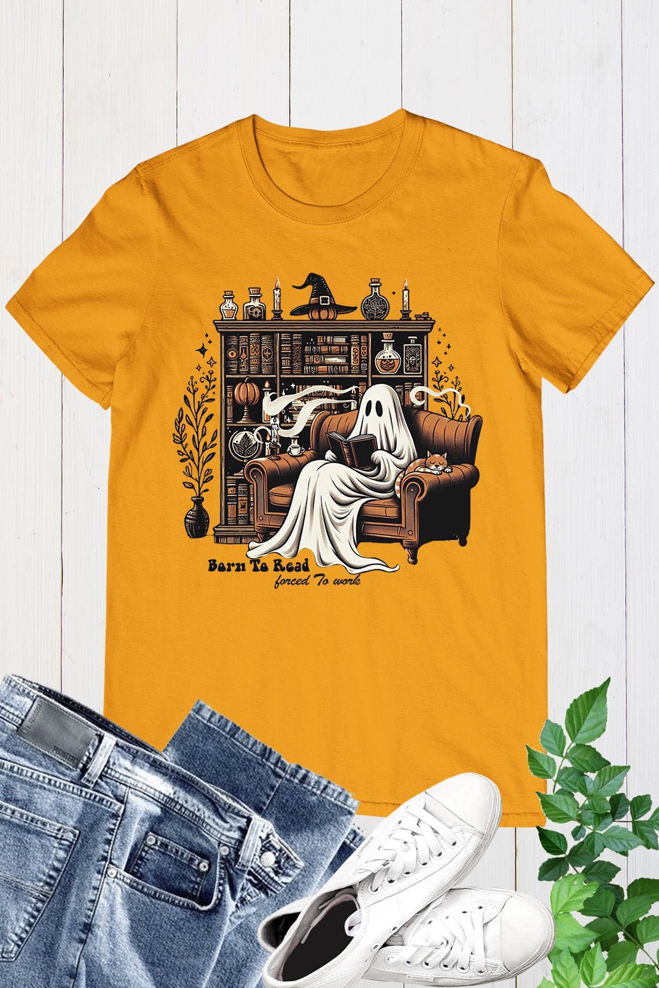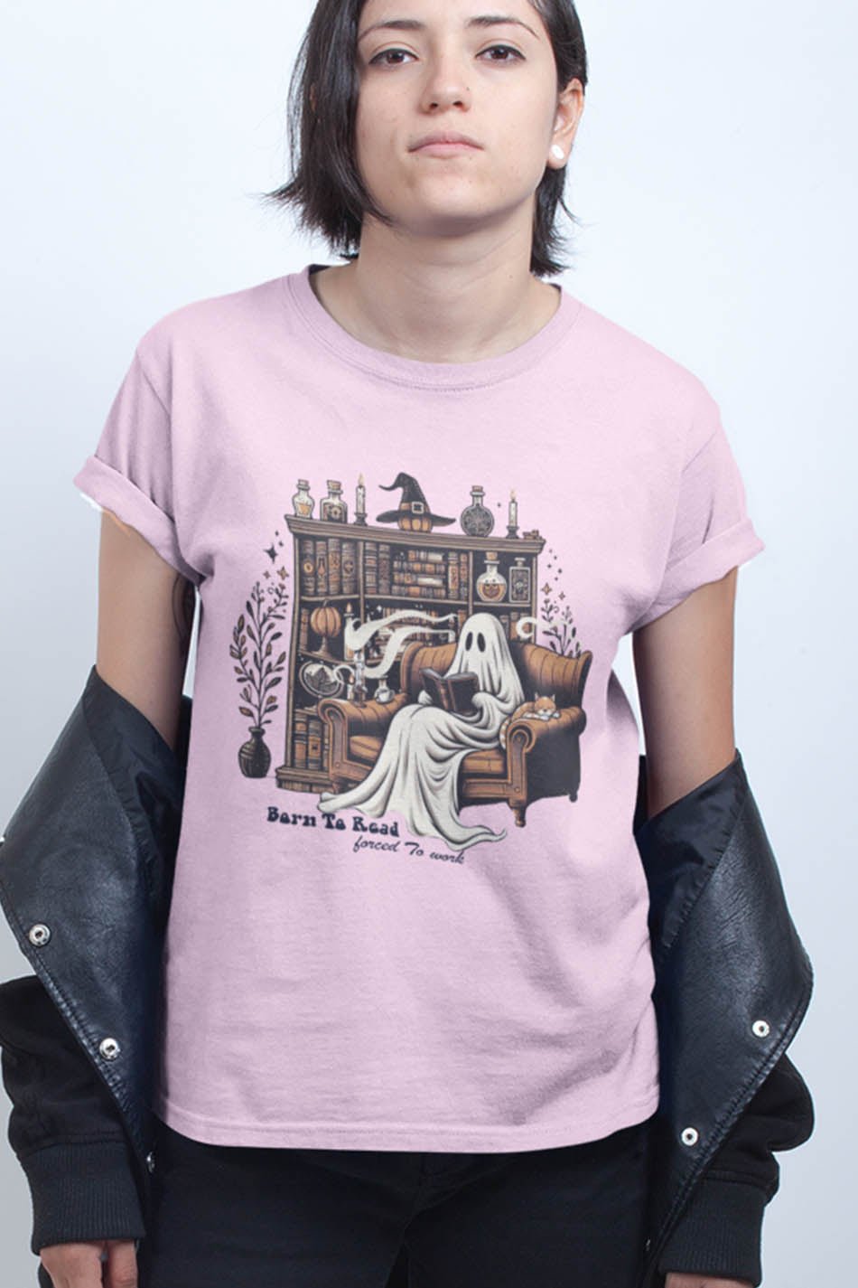 Show off your love for reading and your fun sense of humor with our “Born to Read, Forced to Work” ghost t-shirt. Made with high-quality materials, this t-shirt is comfortable and stylish. Perfect for bookworms and literature enthusiasts.
