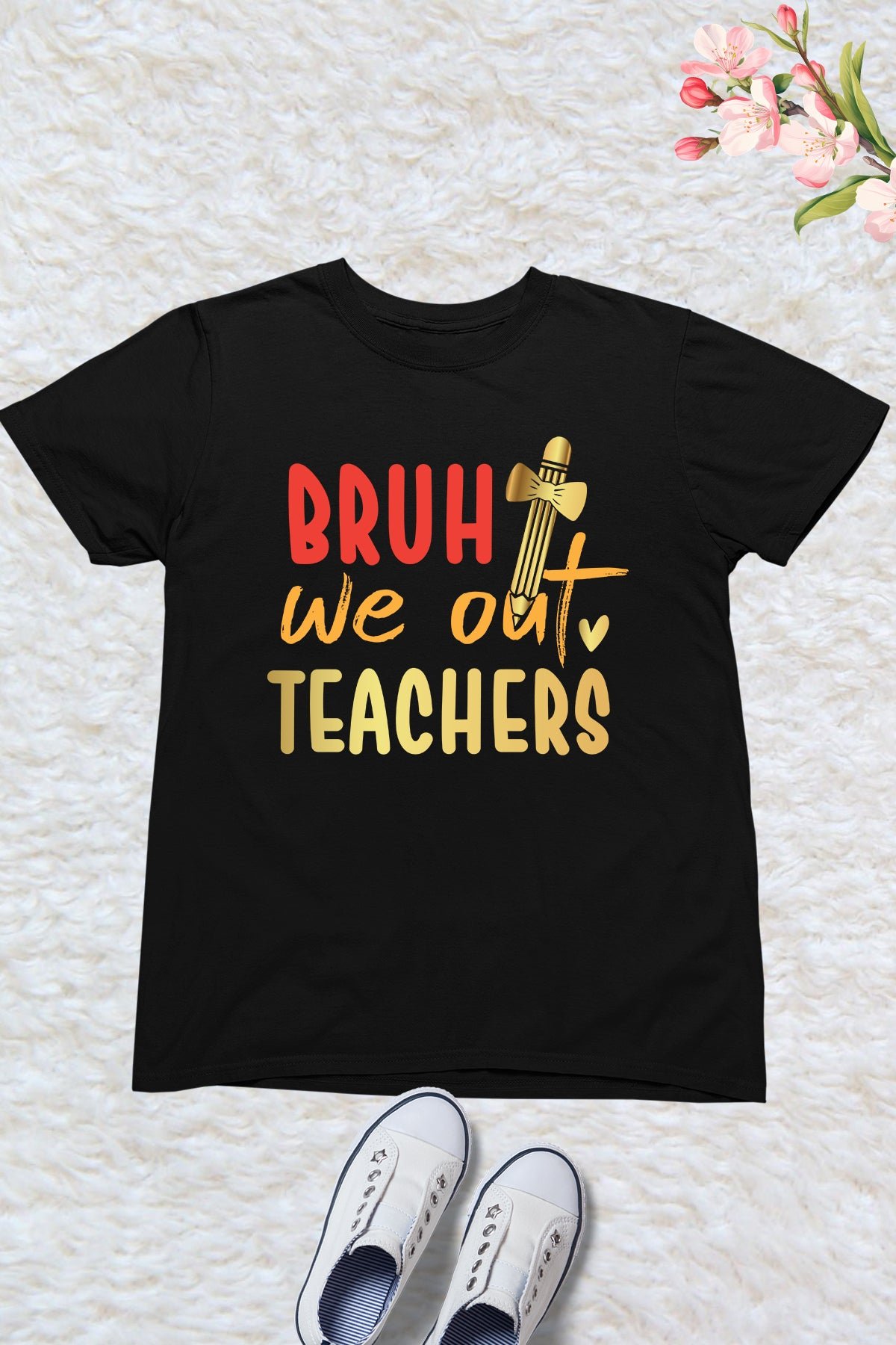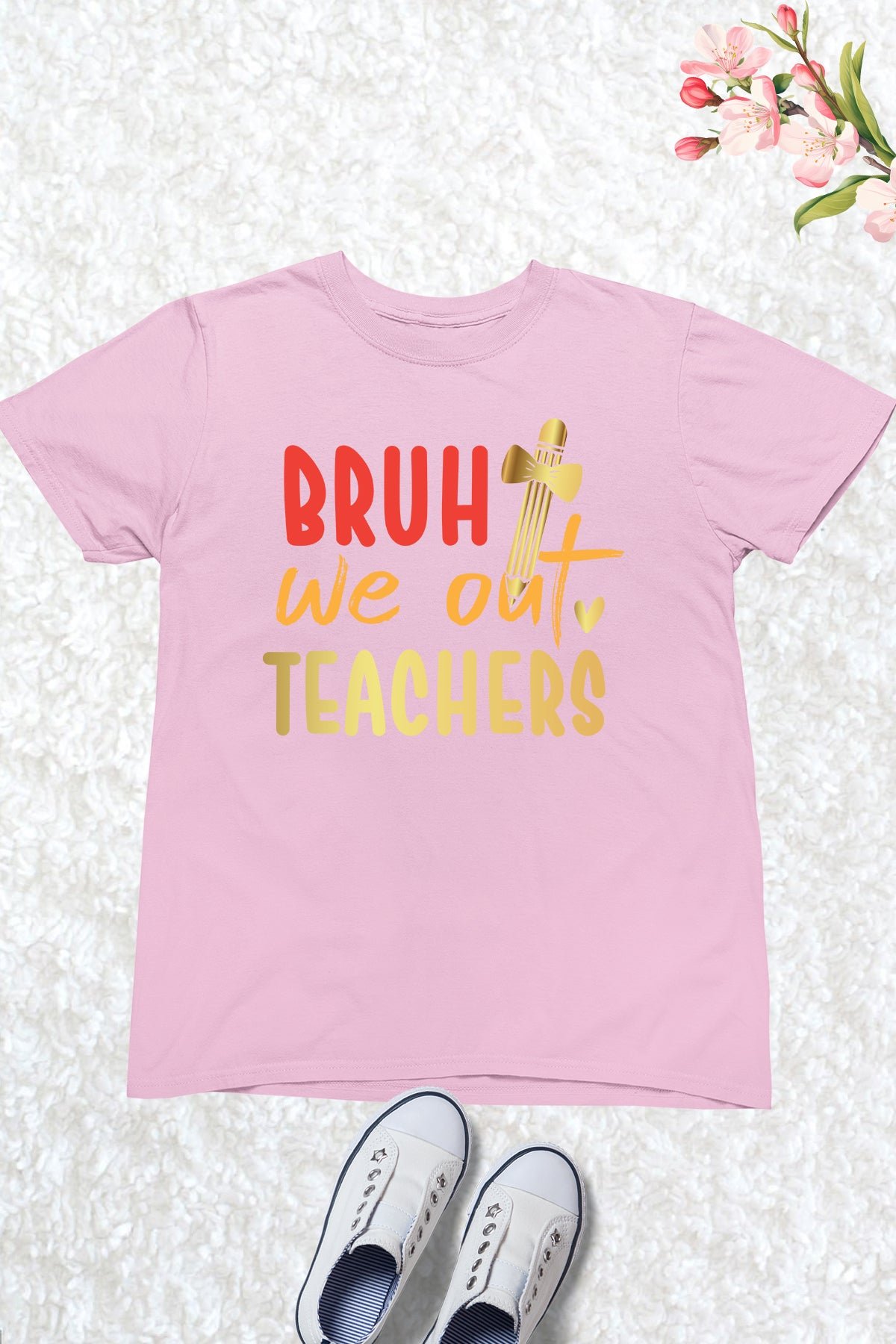Celebrate the last day of school with our “Bruh We Out” teacher t-shirt! Made for kids, this shirt will make them feel proud to say goodbye to their teacher. Made with comfortable fabric and a fun design, it’s the perfect way to end the school year.