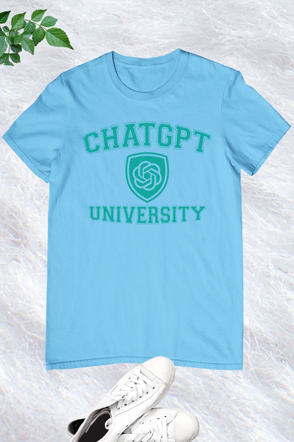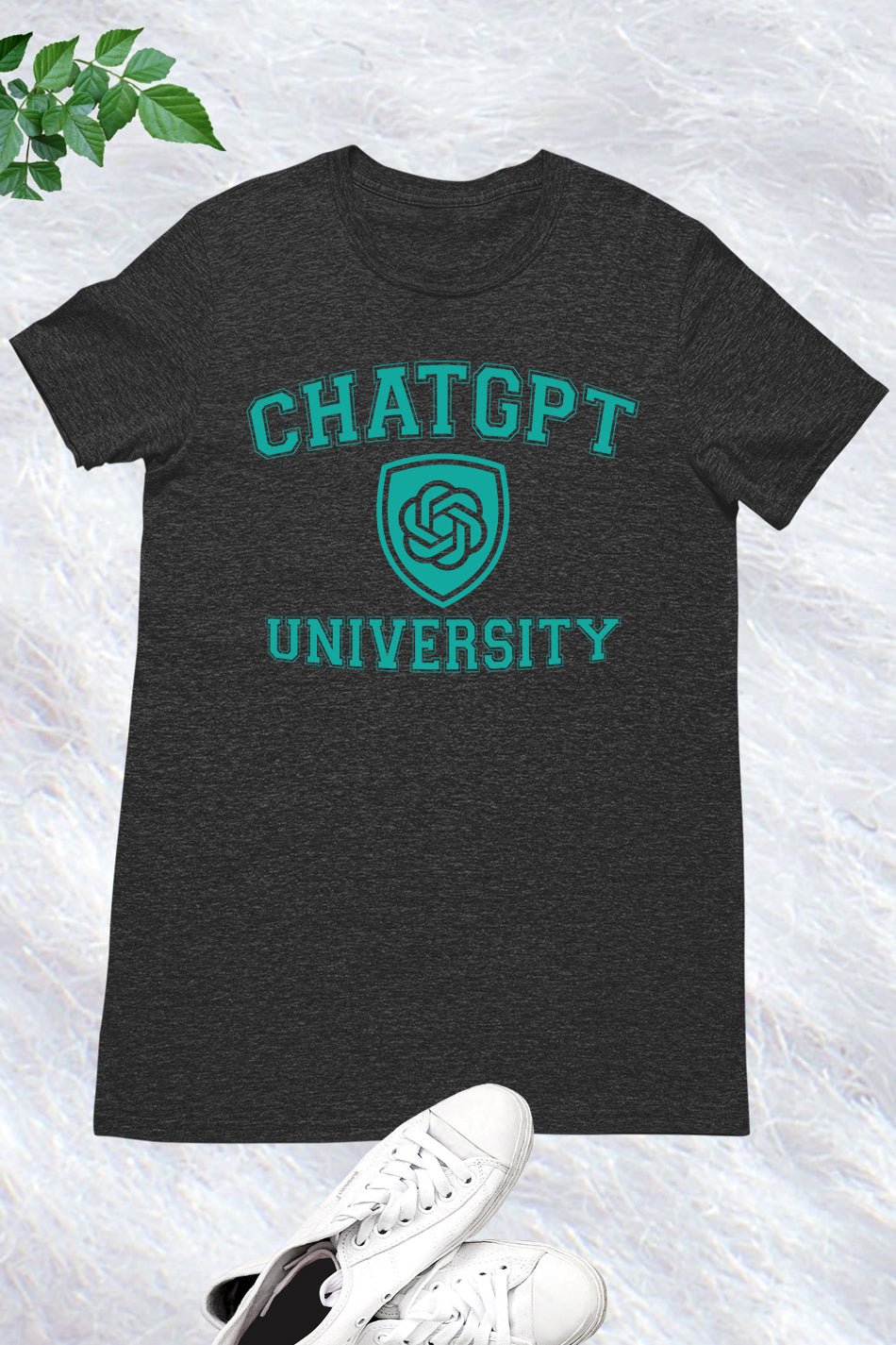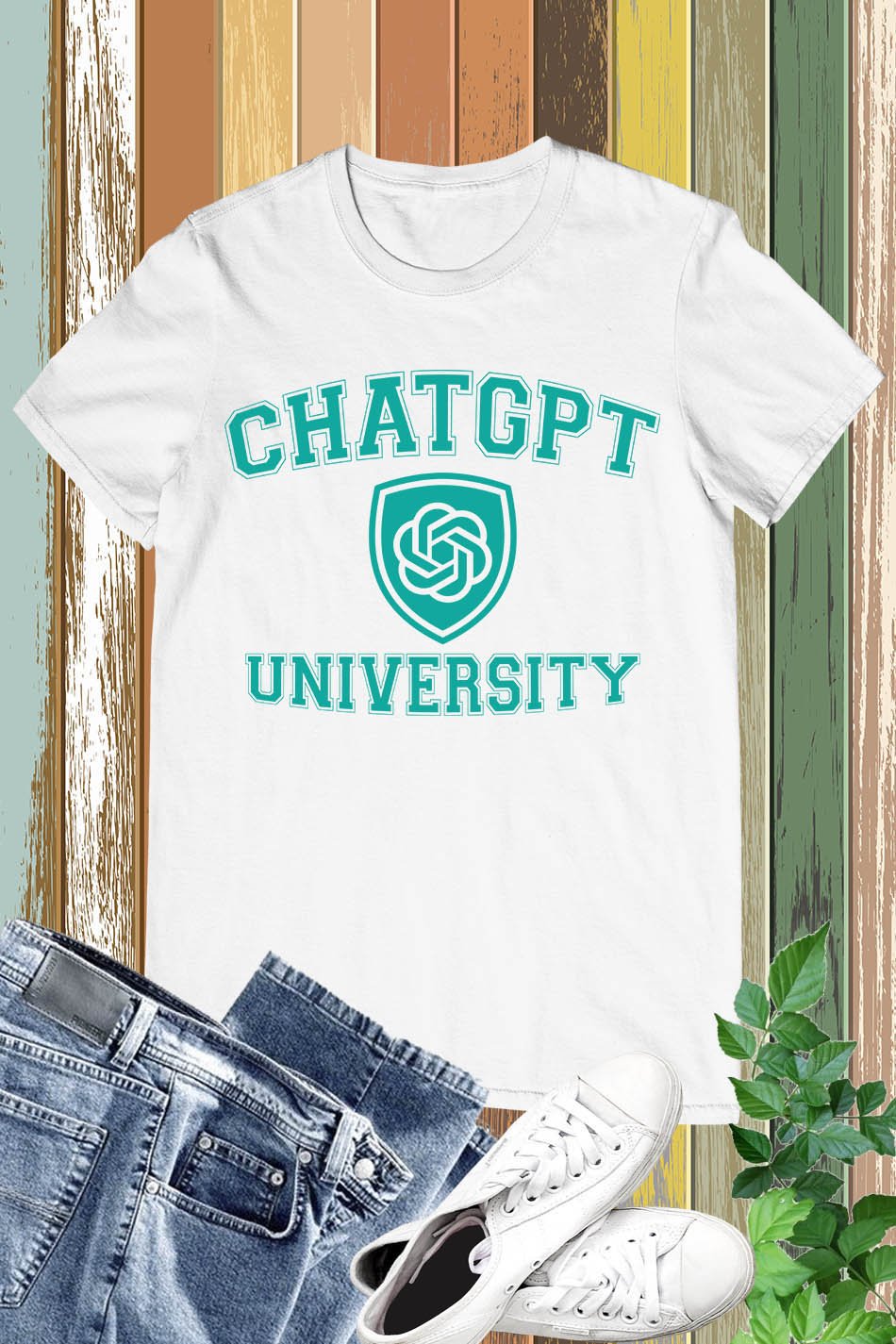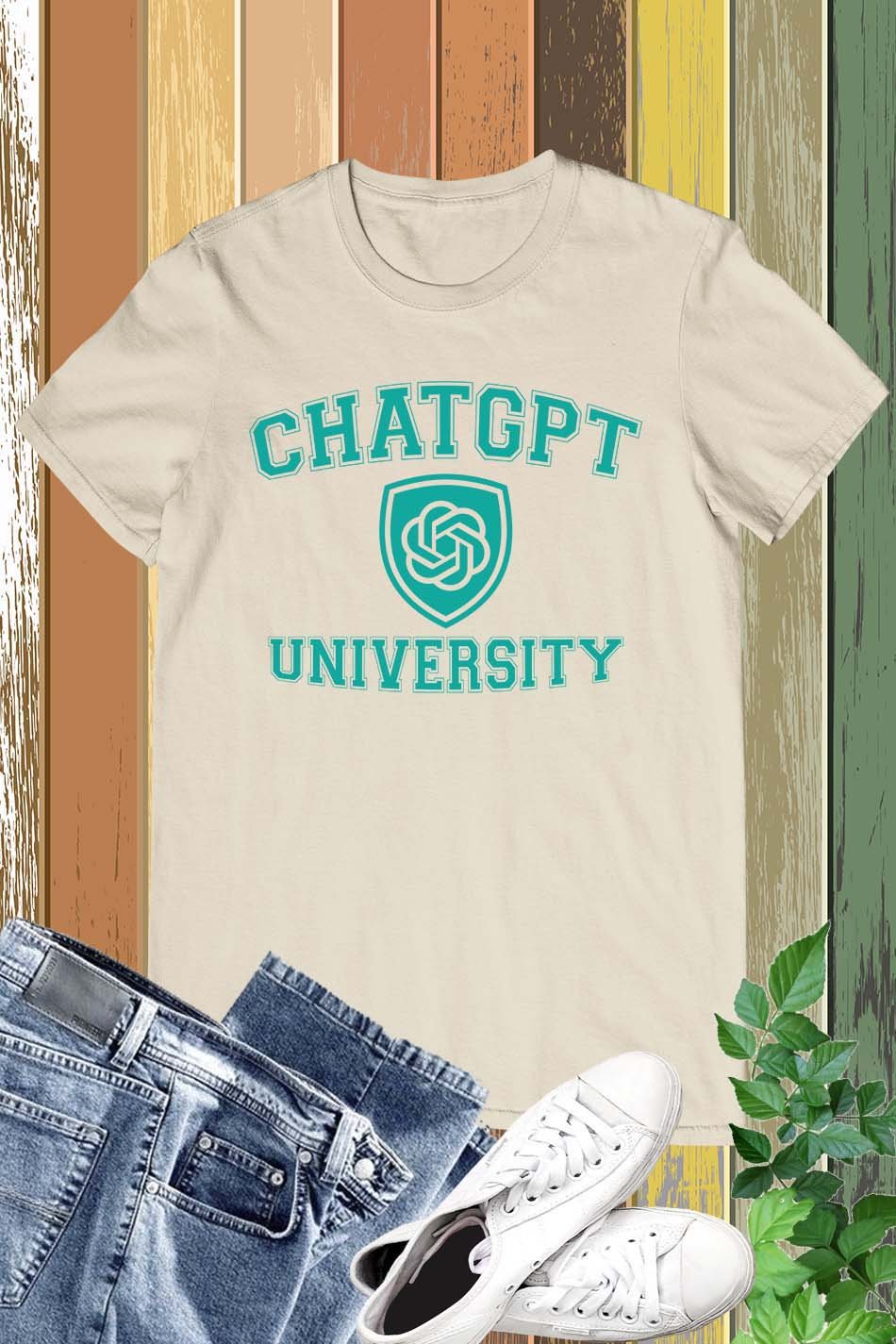 Enhance your wardrobe with our ChatGPT University Shirt. Made from high-quality materials, this shirt features our innovative ChatGPT technology that can generate realistic conversations. Perfect for those looking to up their fashion game while showcasing their love for advanced technology.