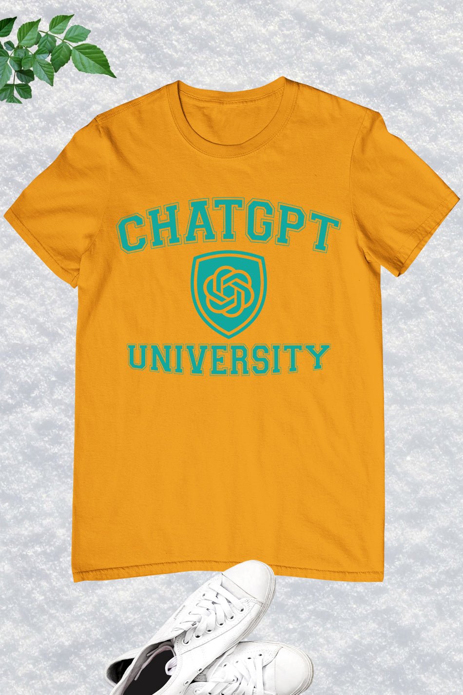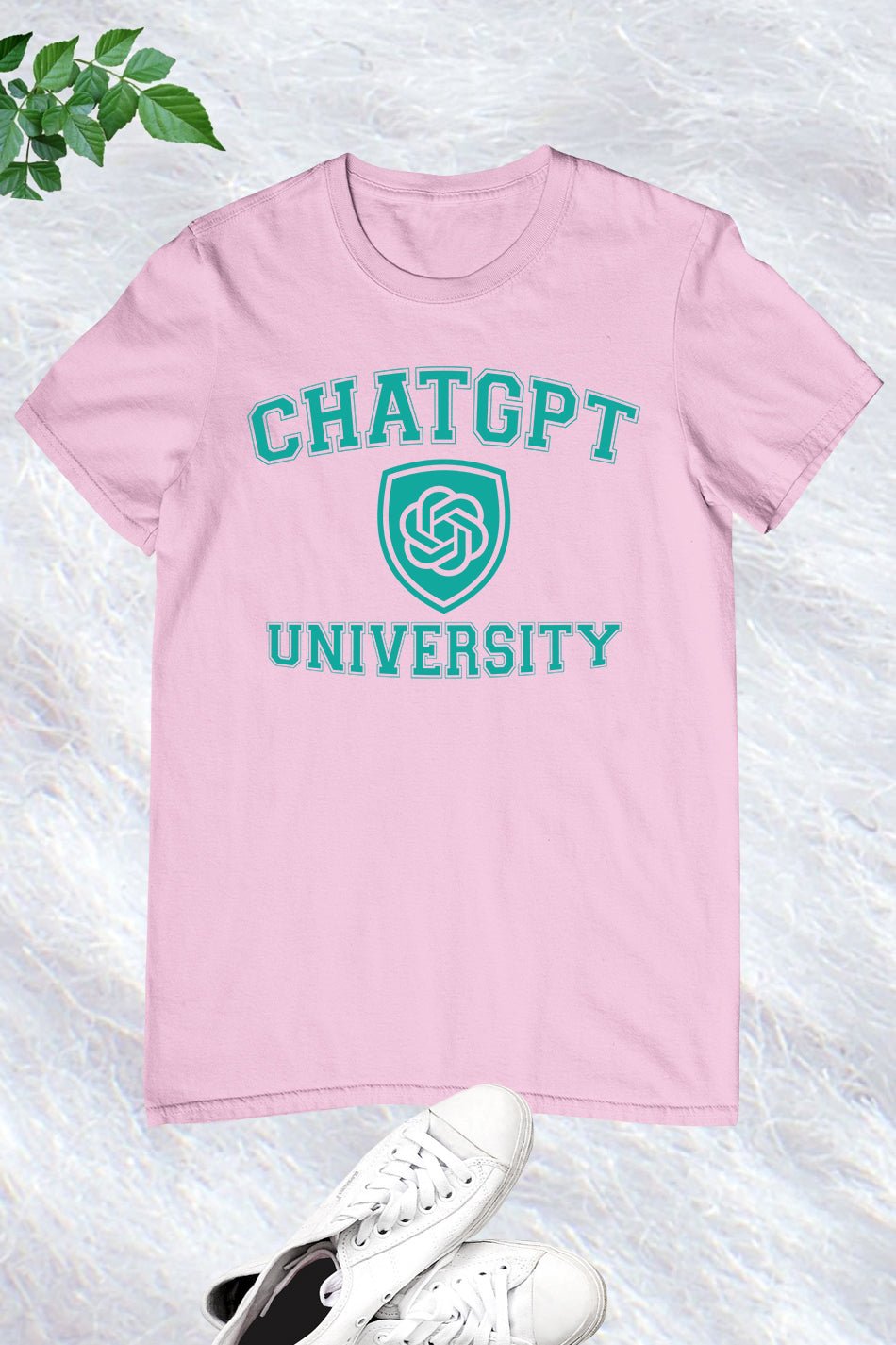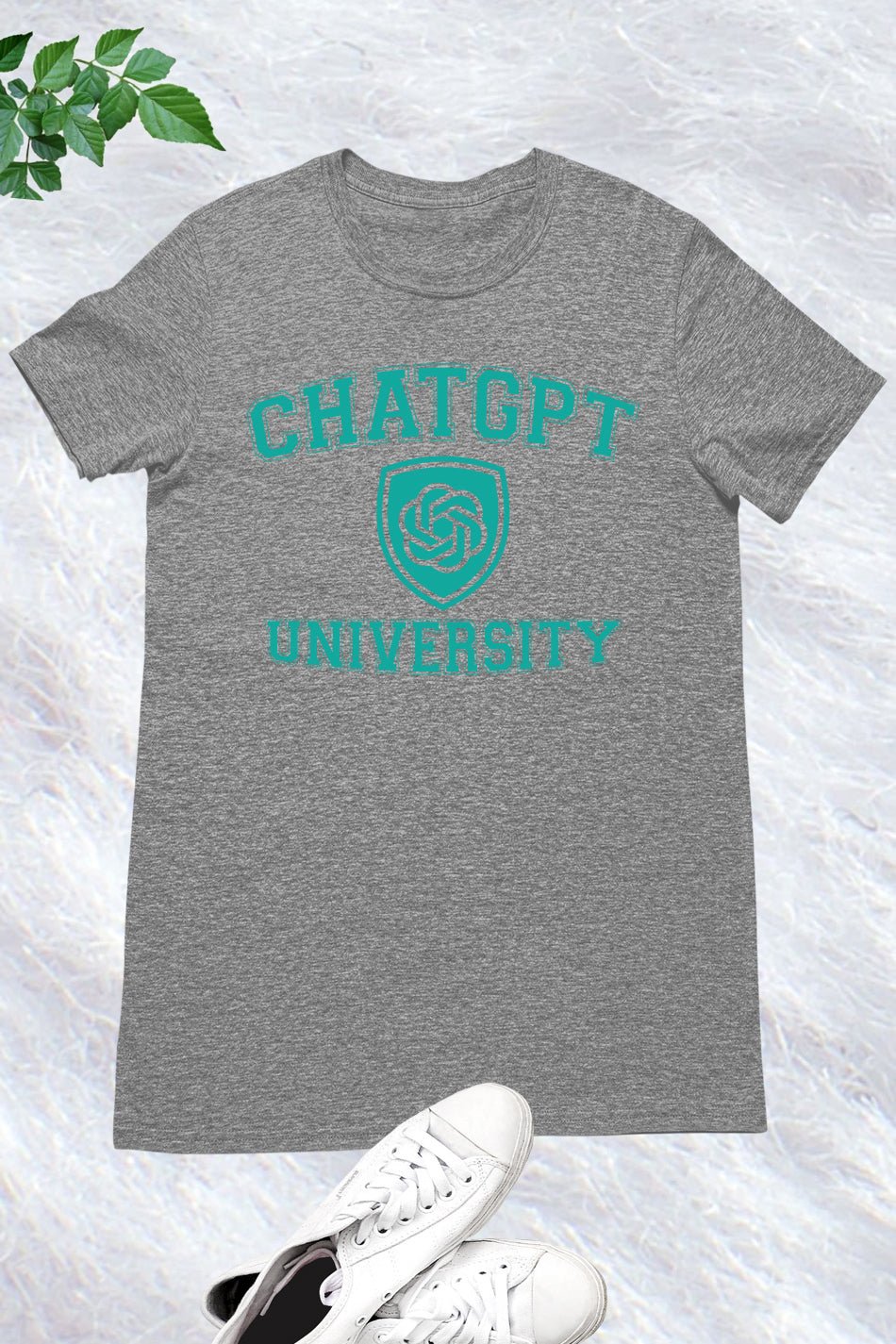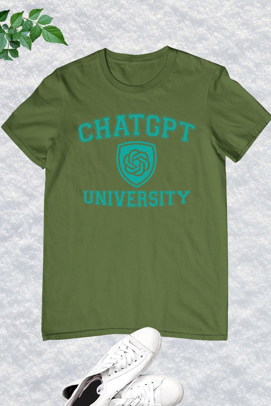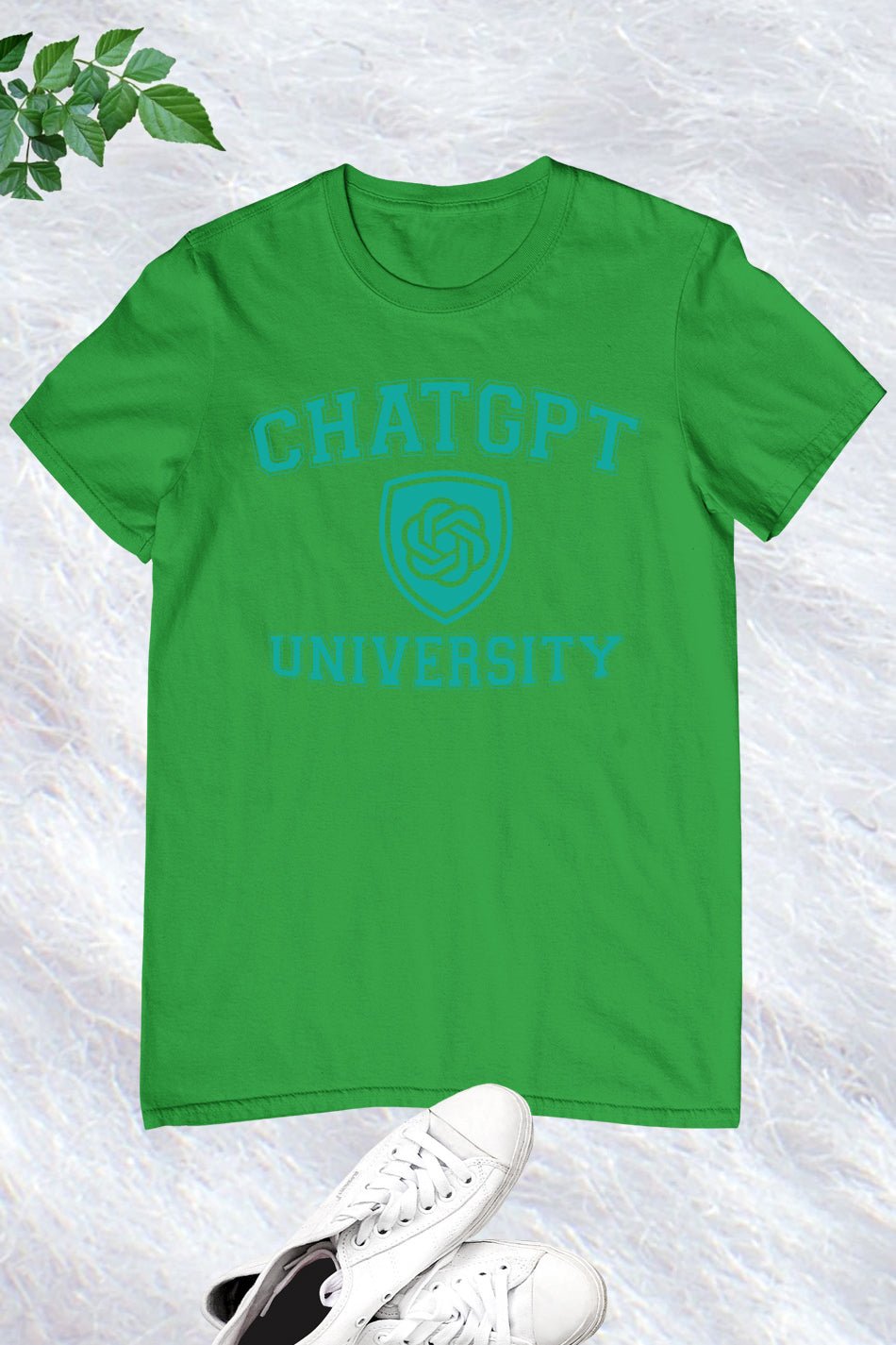 Enhance your wardrobe with our ChatGPT University Shirt. Made from high-quality materials, this shirt features our innovative ChatGPT technology that can generate realistic conversations. Perfect for those looking to up their fashion game while showcasing their love for advanced technology.