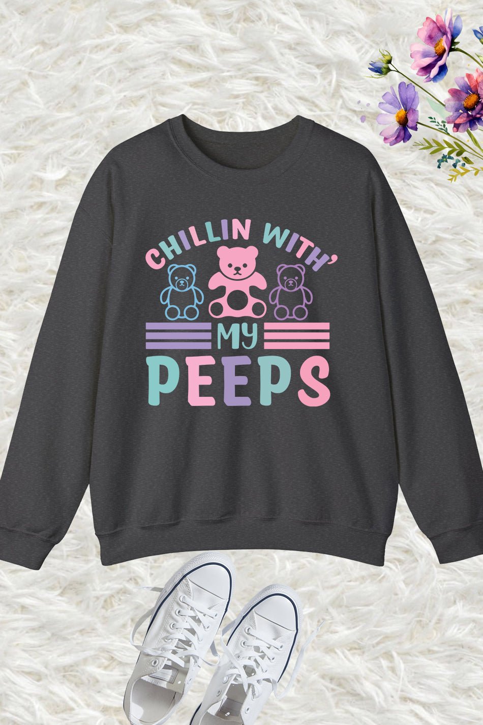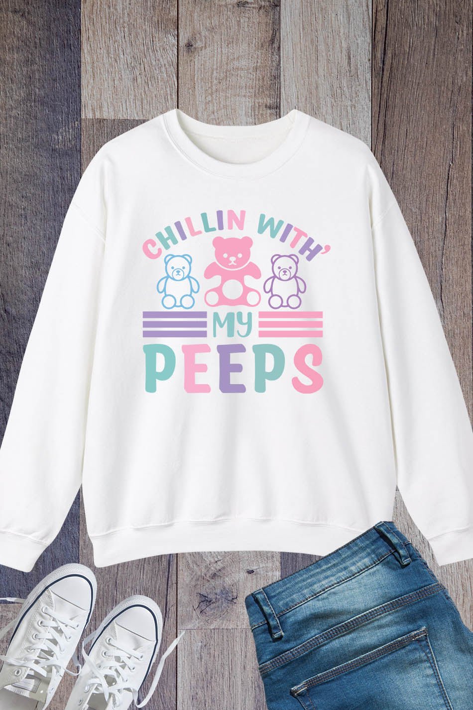 Get cozy and stylish with our Chillin With My Peeps Sweatshirt! Made from soft fabric, this sweatshirt features a fun and playful design that lets you express your love for your favorite peeps. Stay warm and make a statement at the same time. Perfect for lounging or a casual day out with friends.