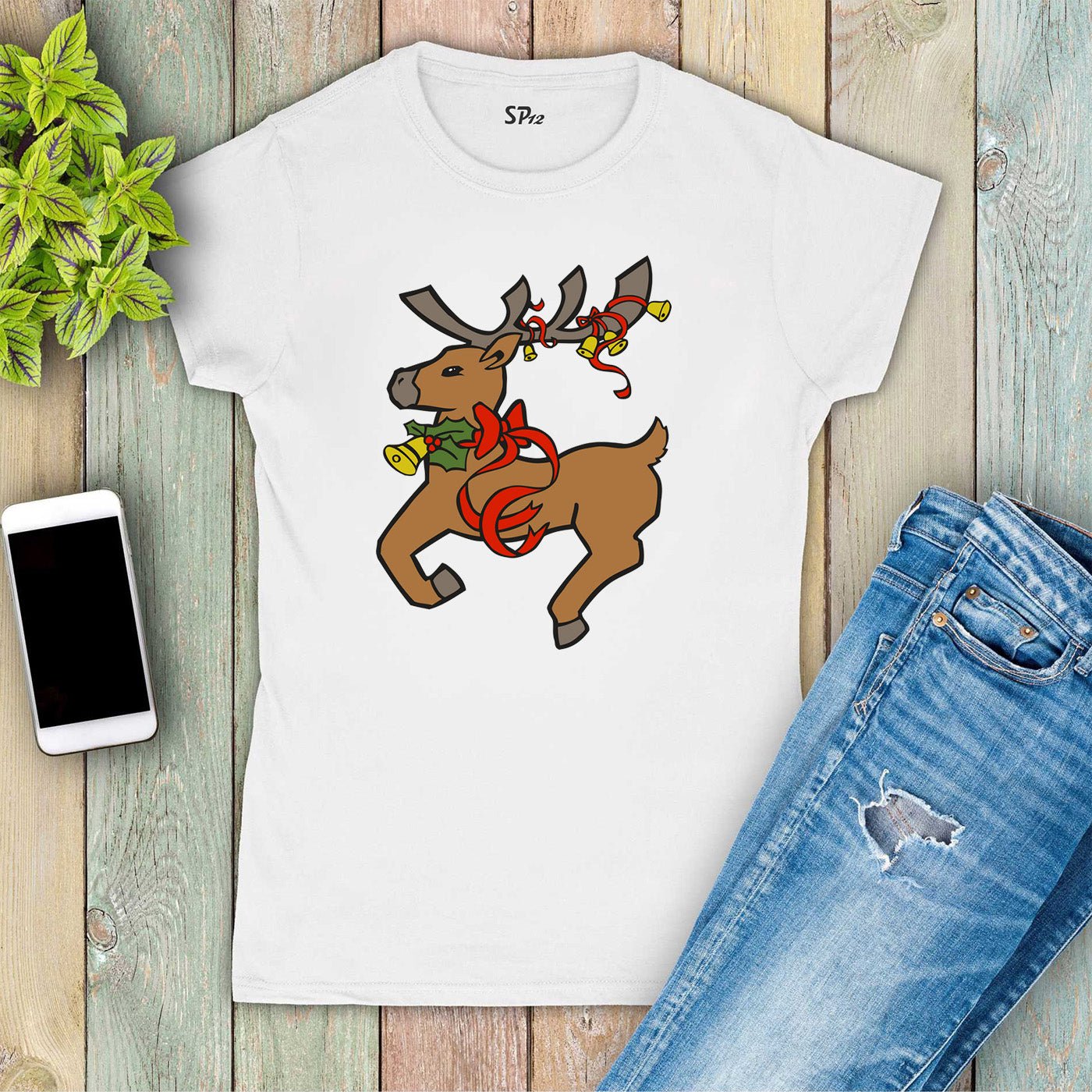 Christmas T Shirt Women Reindeer Seasonal Slogan