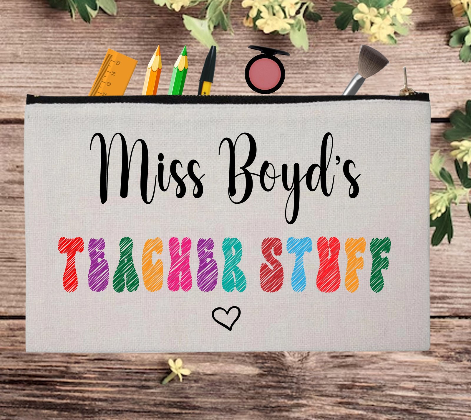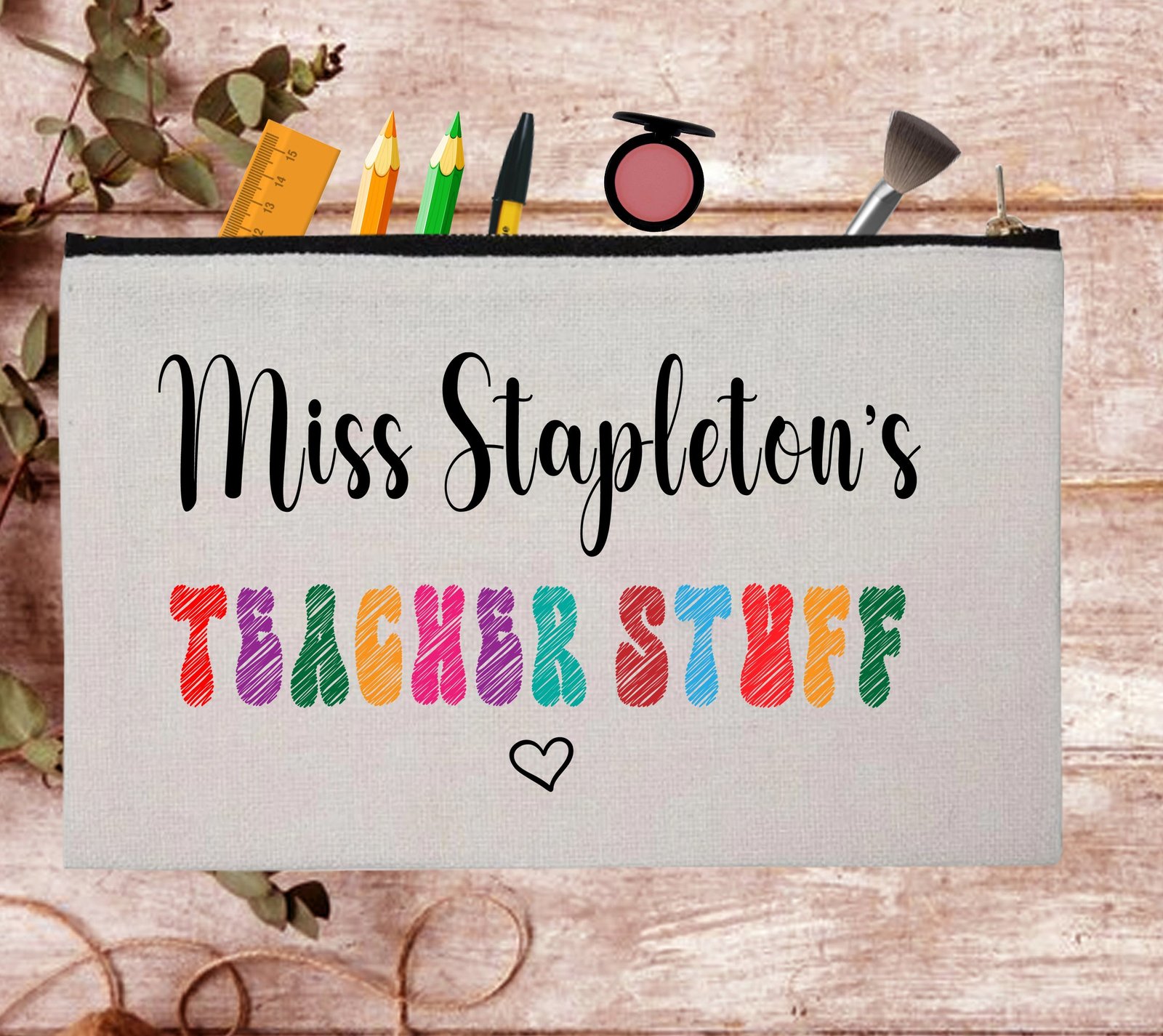 Christmas Teacher Appreciation Custom Thank You Pouch Bag Pencil Case is made with polyester and natural look. This quality and durability bag can be used for stationery, cosmetics, brushes, stickers, headsets, coins, cash, cards, and other accessories you need. Easy smooth zip closure bag is suitable for everyone to use in school, office, and travel.