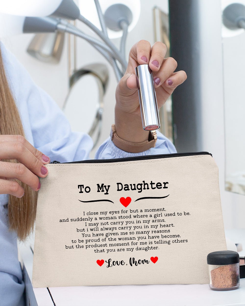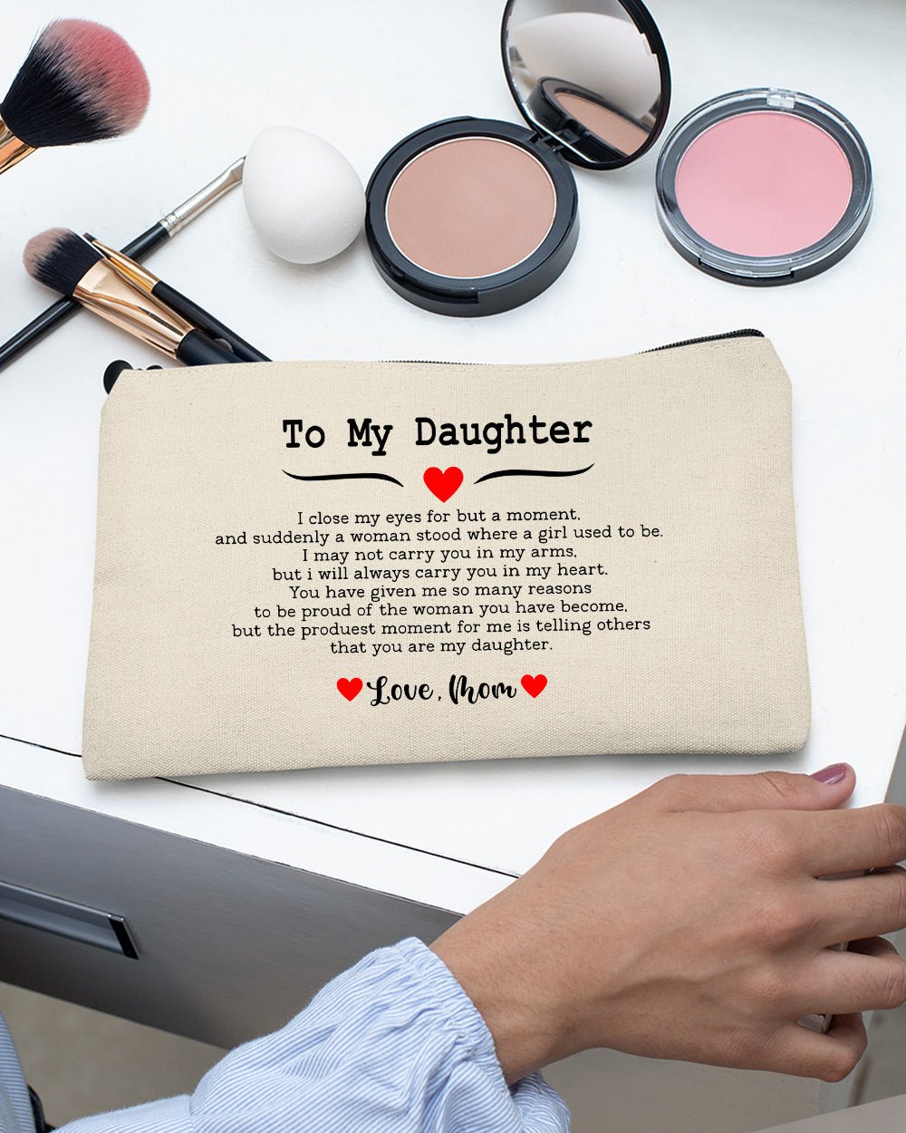 Get your daughter organized in style with our Custom Daughter Pencil Case Accessory Bag from Mom. Designed with love, this bag will keep all her school supplies in one place while serving as a special reminder of your bond. A perfect gift for the studious fashionista. Order now!