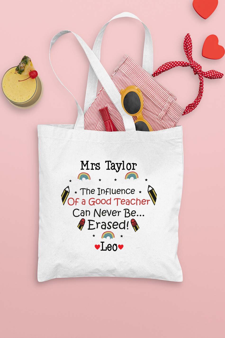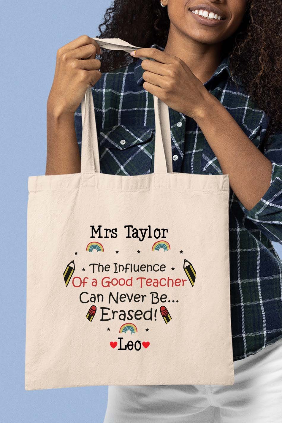This customizable tote bag celebrates the impact of teachers in shaping minds and futures. Made with durable materials and carefully crafted design, it is a practical and meaningful way to show appreciation. A perfect gift for any educator.