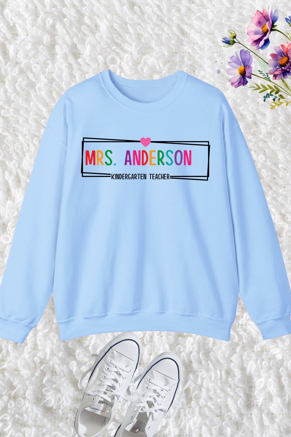 Elevate your style and show off your profession with our Custom Kindergarten Teacher Sweatshirt. Made with high-quality materials, this sweatshirt is perfect for any teacher looking to add a personal touch to their wardrobe. Stay comfortable and showcase your pride as a kindergarten teacher with this custom design.