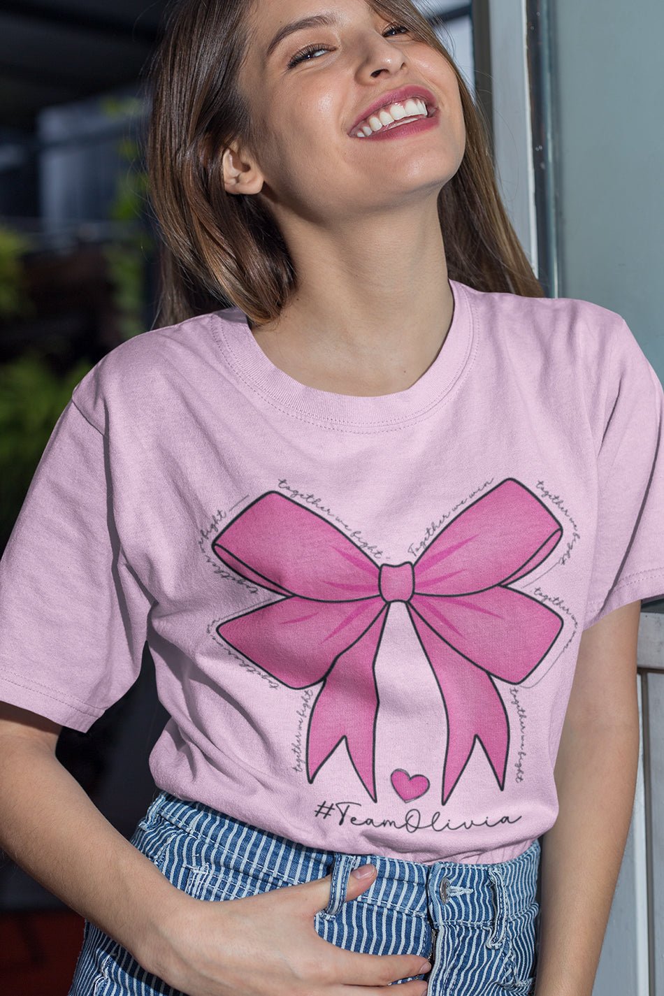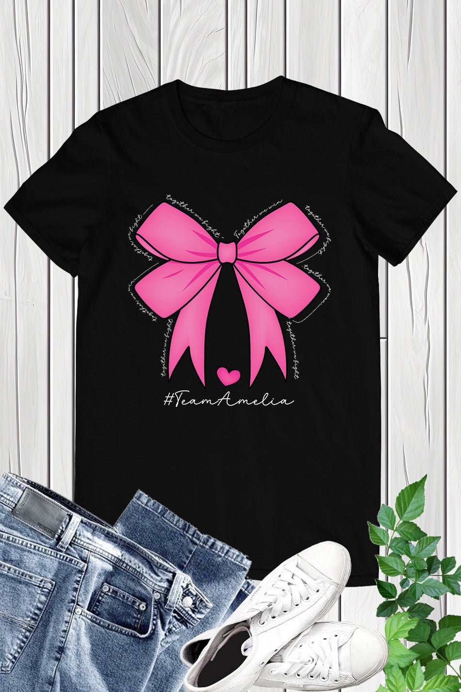Stay stylish and show your support for breast cancer awareness with our Custom Pink Bow Breast Cancer Awareness Shirt. Made with high-quality materials and adorned with a custom pink bow, this shirt is both fashionable and meaningful. A portion of each sale goes towards supporting breast cancer research and awareness. Join the fight today with our Custom Pink Bow Breast Cancer Awareness Shirt.