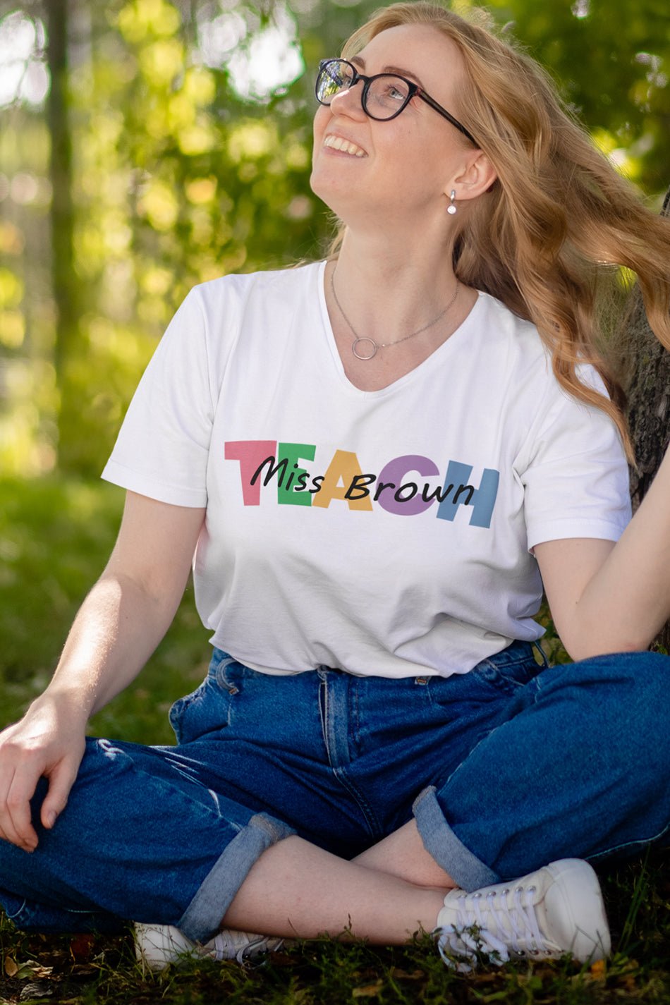 This Custom Teacher Teach Shirt is designed for teachers who want to make a statement in the classroom. Customizable with your own unique teaching message, this shirt is perfect for showcasing your passion for education. Made with high-quality materials, it offers both comfort and style. Stand out as a dedicated teacher with this unique shirt.