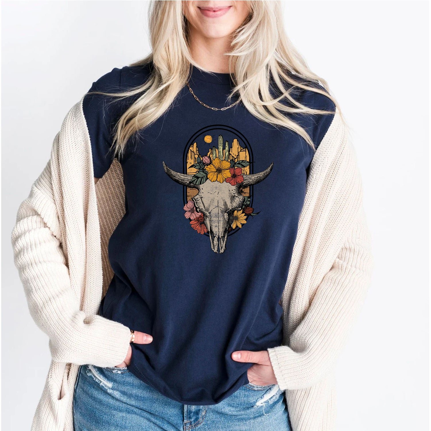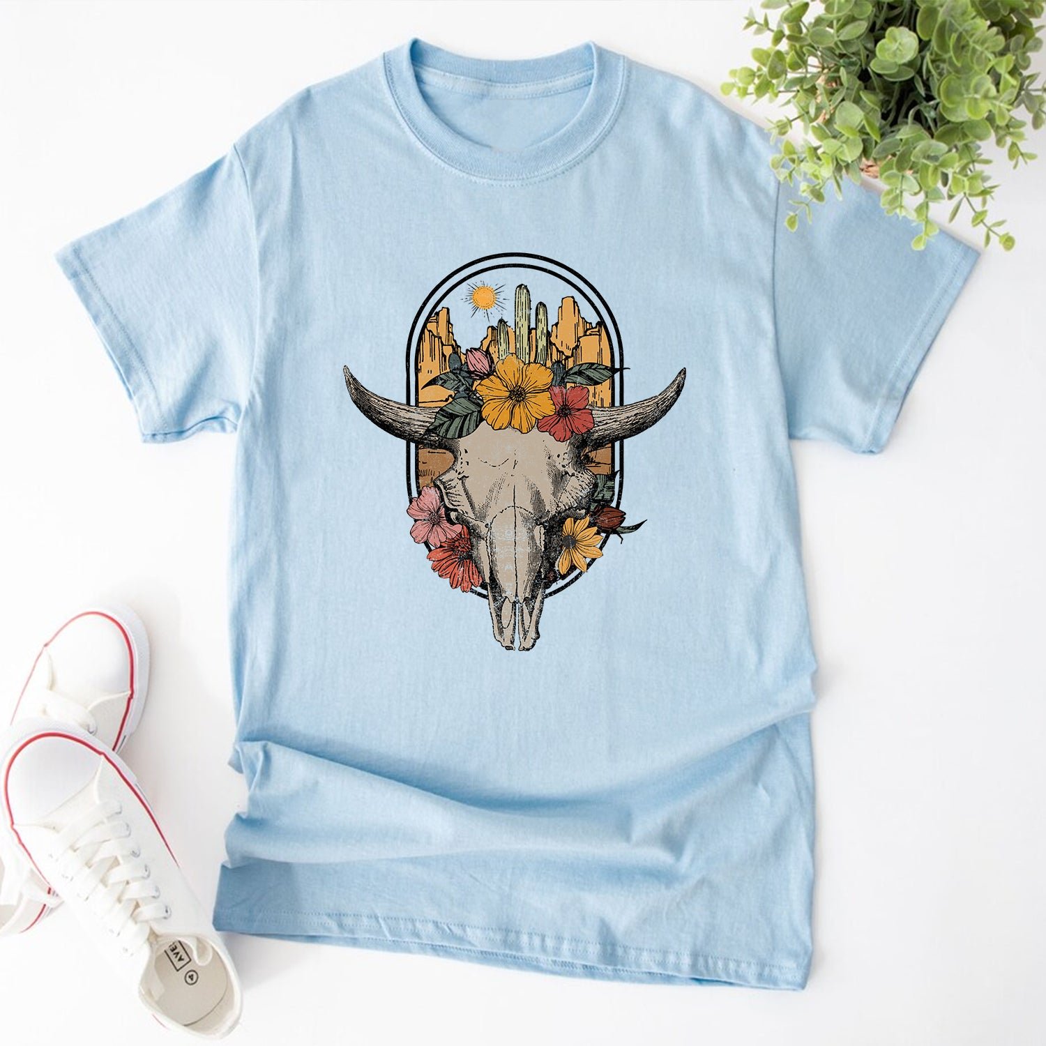 Customized Western Cow Skull Graphic T-Shirts For Adults and Kids