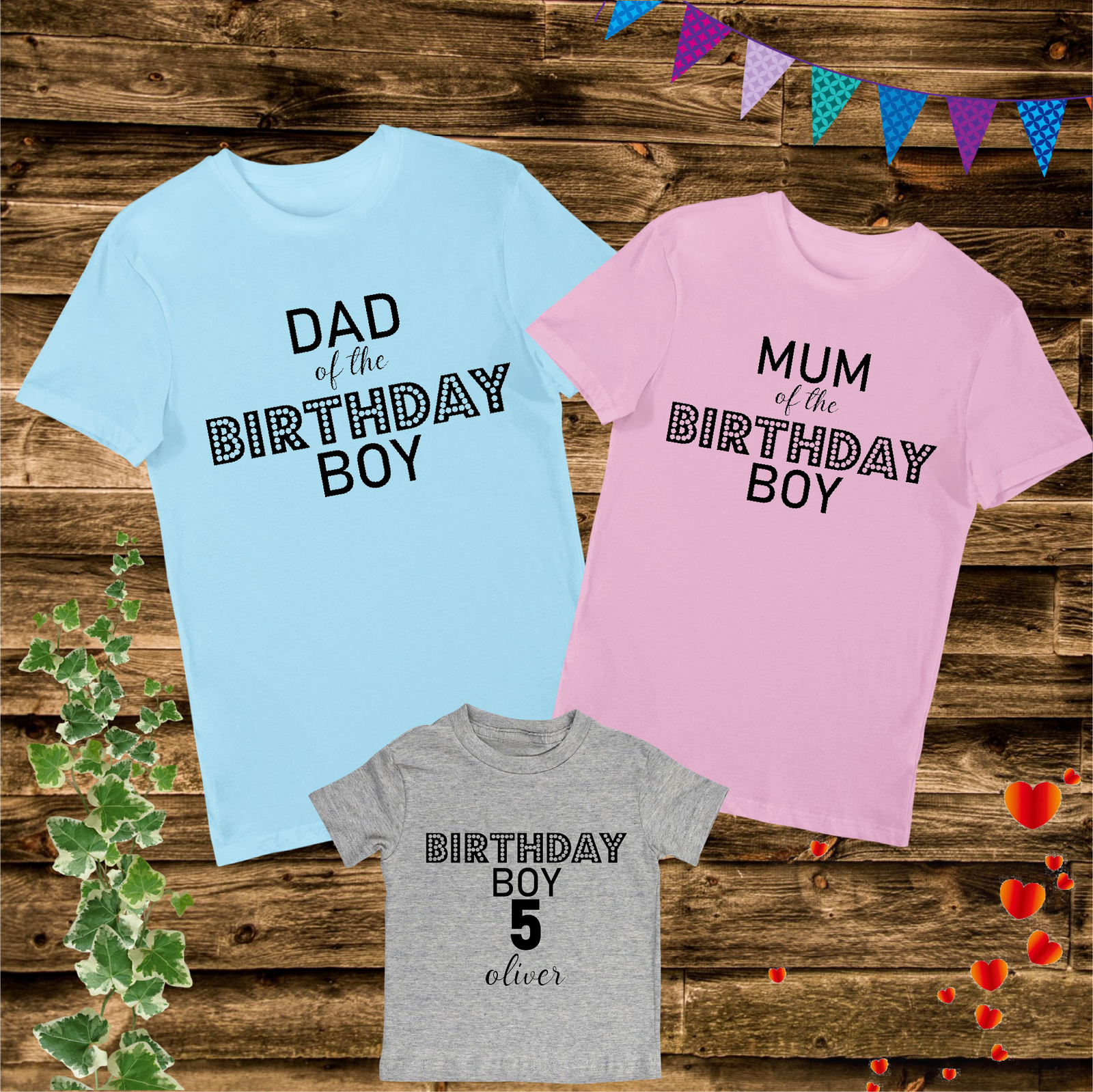 Dad Mum Birthday Boy Family Matching T Shirt Family Matching T Shirts are stylish and printed with quality printing method to make everyone in the family happy. These family shirts are designed for dad, mum, brother and sister baby. These matching clothes will be a lovely gift for family.