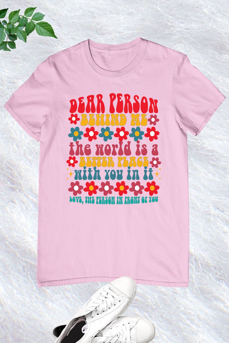 This Dear Person Behind Me Trendy Shirt is a must-have for anyone who loves expressing themselves through fashion. With its eye-catching design and high-quality material, this shirt is perfect for making a statement and turning heads. Made for the fashion-forward individual who wants to stand out in a crowd.