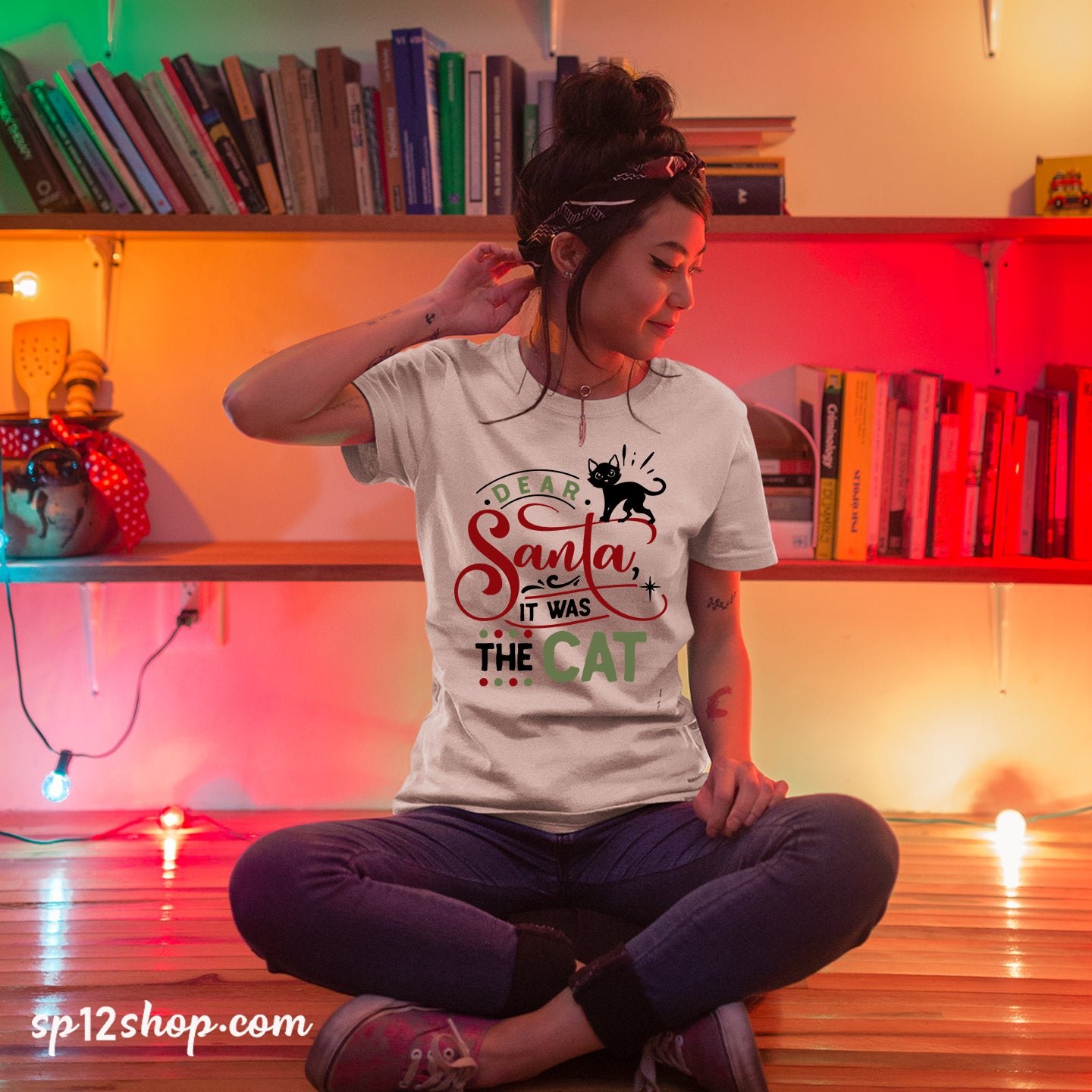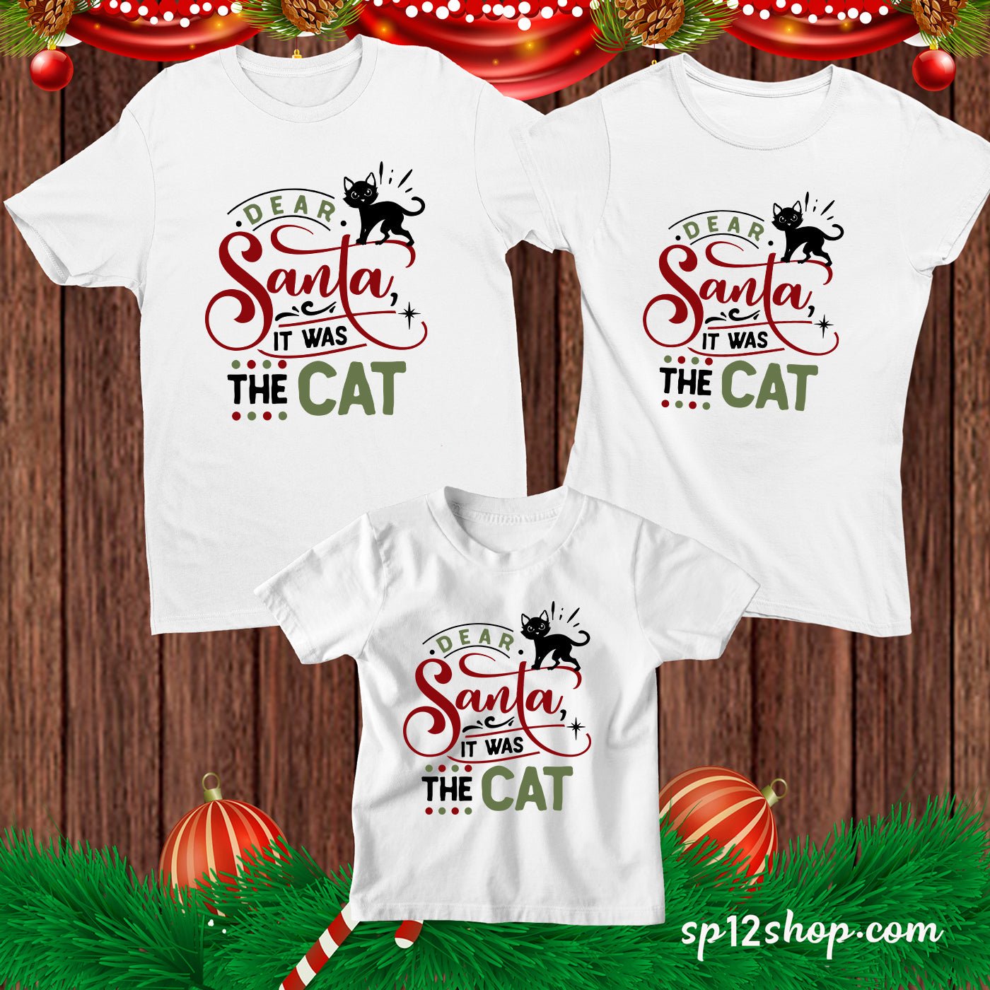 Funny Christmas T shirt Dear Santa It Was The cat Tee