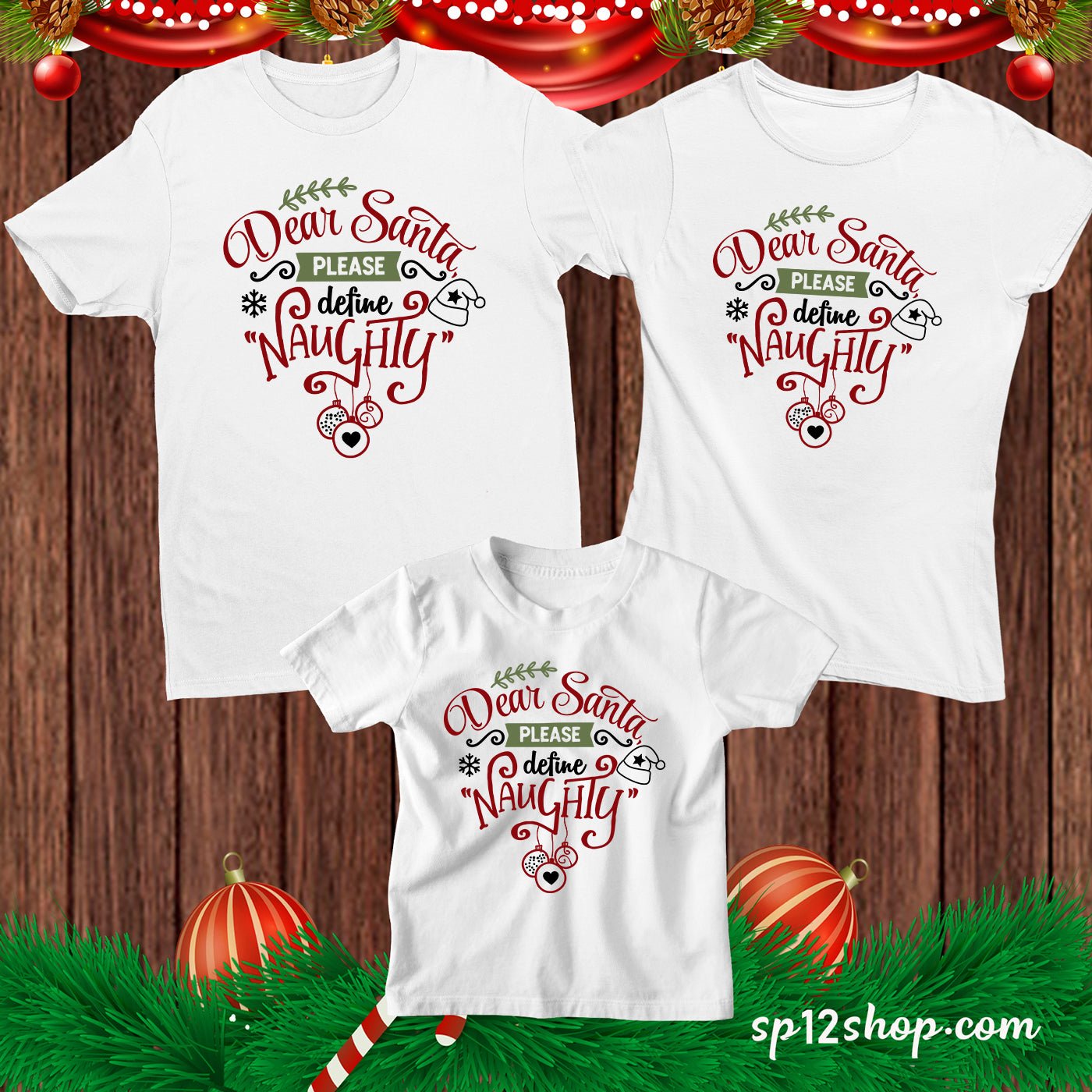 Funny Christmas T shirt Dear Santa please Define Naughty Tee