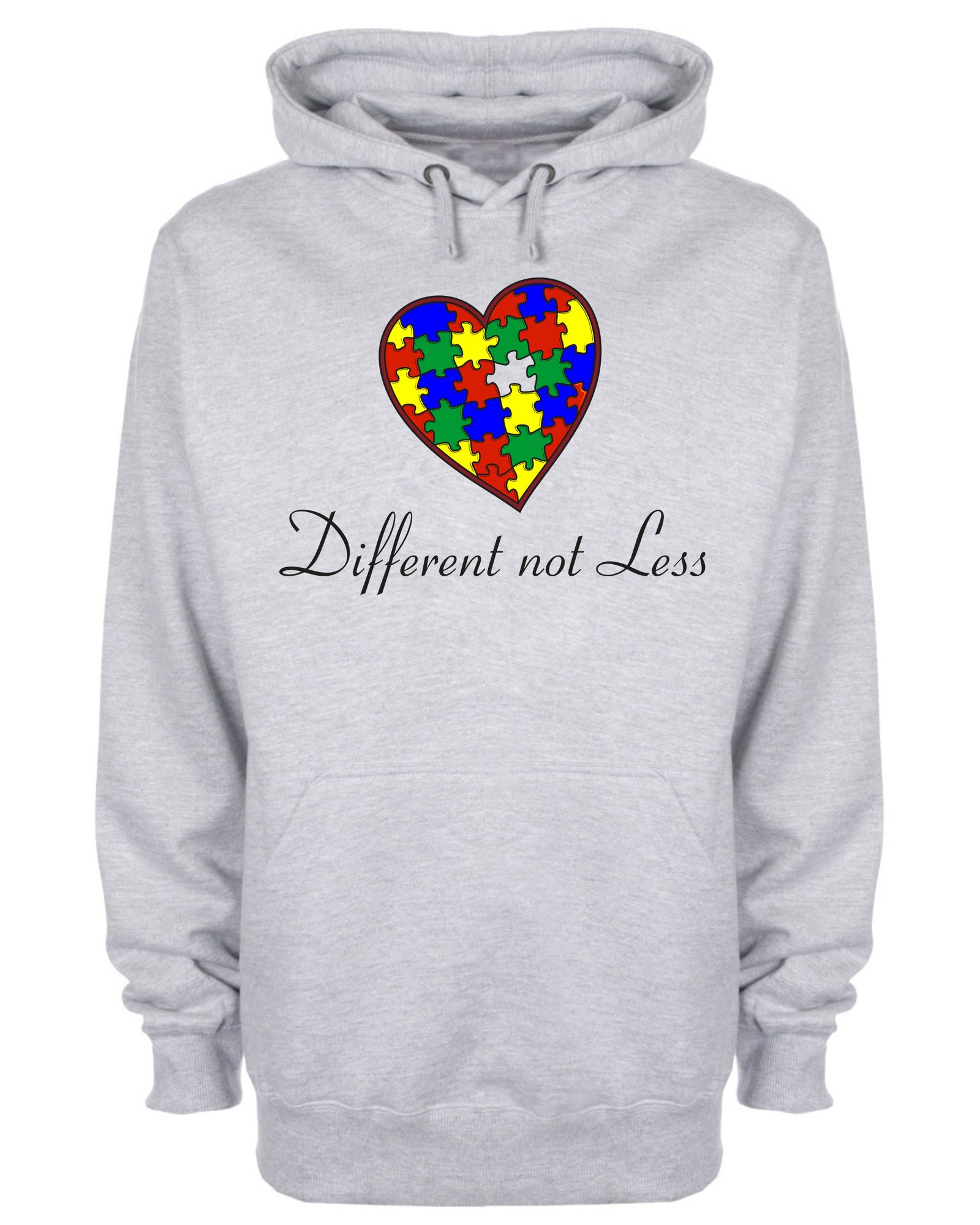 This Different Not Less Love Puzzle Autism Awareness Hoodie showcases your support and understanding of those with autism. Made with comfortable materials and a unique puzzle design, you can spread awareness while staying cozy. Show your love for the autism community with this impactful hoodie.