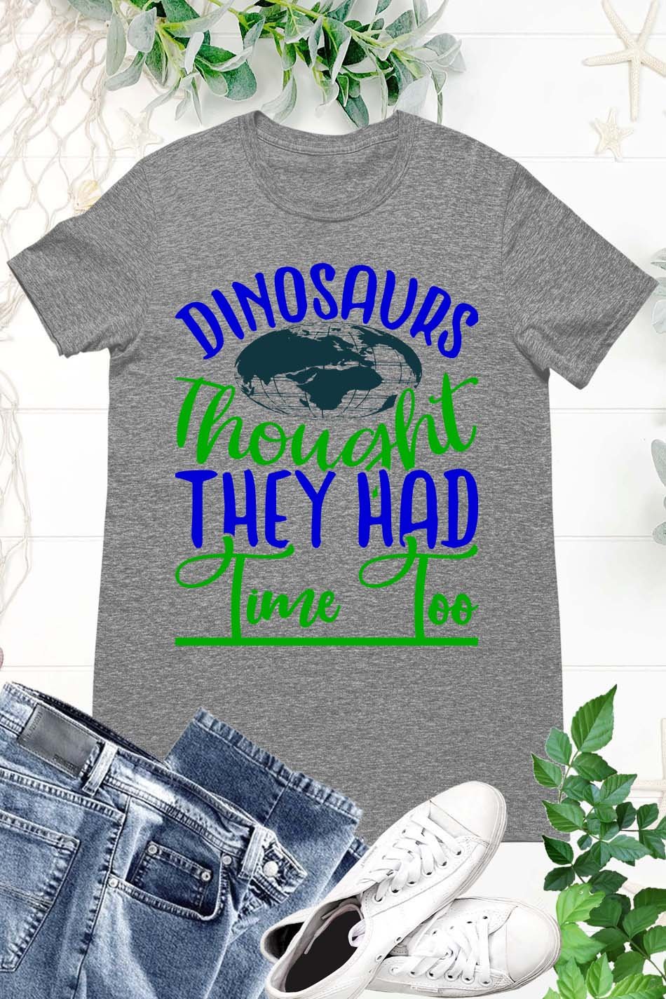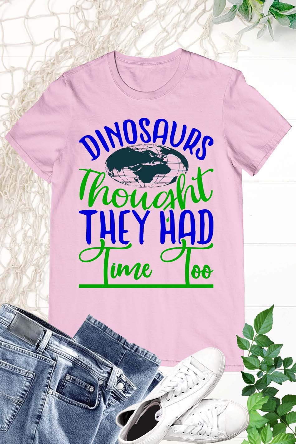 Celebrate Earth Day with our “Dinosaurs Thought They had time too” shirts! Made from high-quality materials, these shirts are both comfortable and environmentally friendly. Show off your love for the planet and spread awareness about conservation with this unique and educational design. Get yours today!