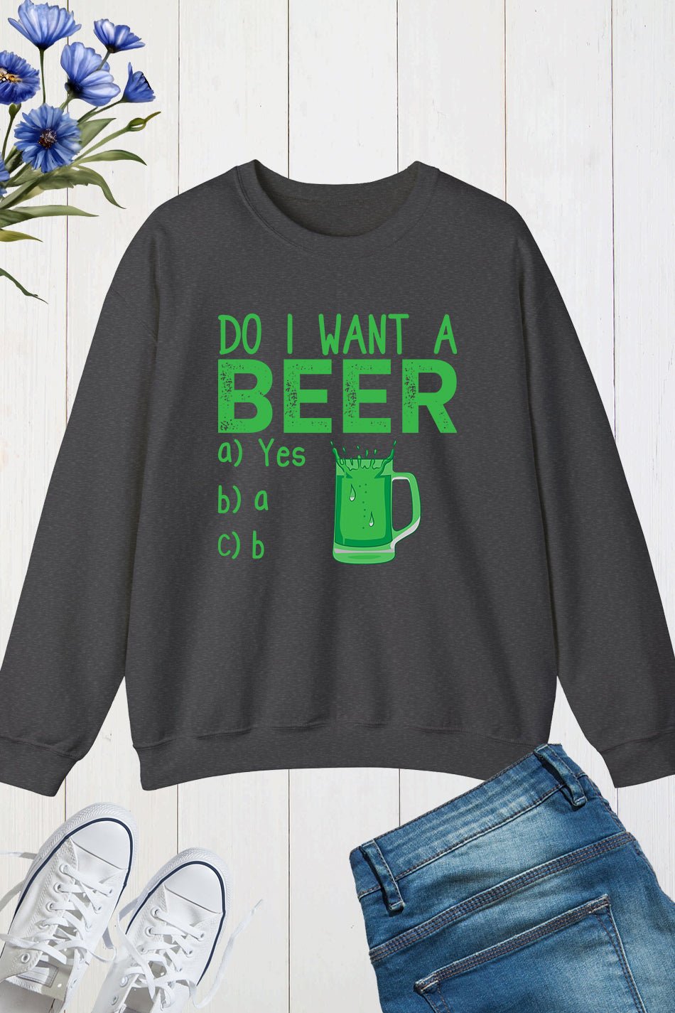 Celebrate St. Patrick’s Day in style with our “Do I Want A Beer” sweatshirt! Stay cozy and funny with this bold statement piece. Perfect for any St. Patty’s Day party or just lounging at home. Show off your love for beer and fun with this must-have sweatshirt.