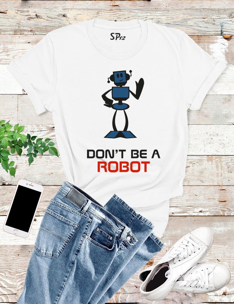 Don’t Be A Robot T Shirt is printed with the message Don’t Be A Robot.Fan of motivational quotes or funny memes then you will like our slogan tshirt. These soft cotton tshirts are stylish and comfy. Funny t shirts that can give someone a laugh or sparkling smile and happy time. This slogan t shirt will get an attention and compliment.