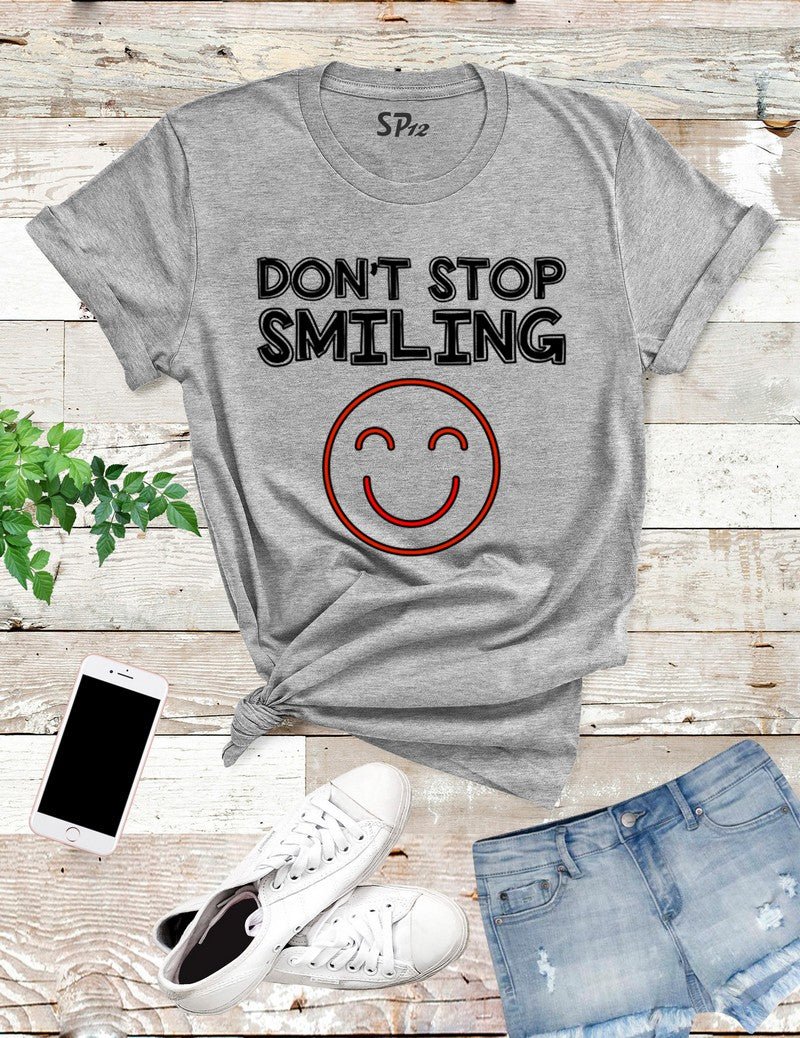 Don’t Stop Smiling T Shirt is printed with the message Smiling.Fan of motivational quotes or funny memes then you will like our slogan tshirt for women . These soft cotton tshirts are stylish and comfy for ladies. Funny t shirts that can give someone a laugh or sparkling smile and happy time. This slogan t shirt will get an attention and compliment.