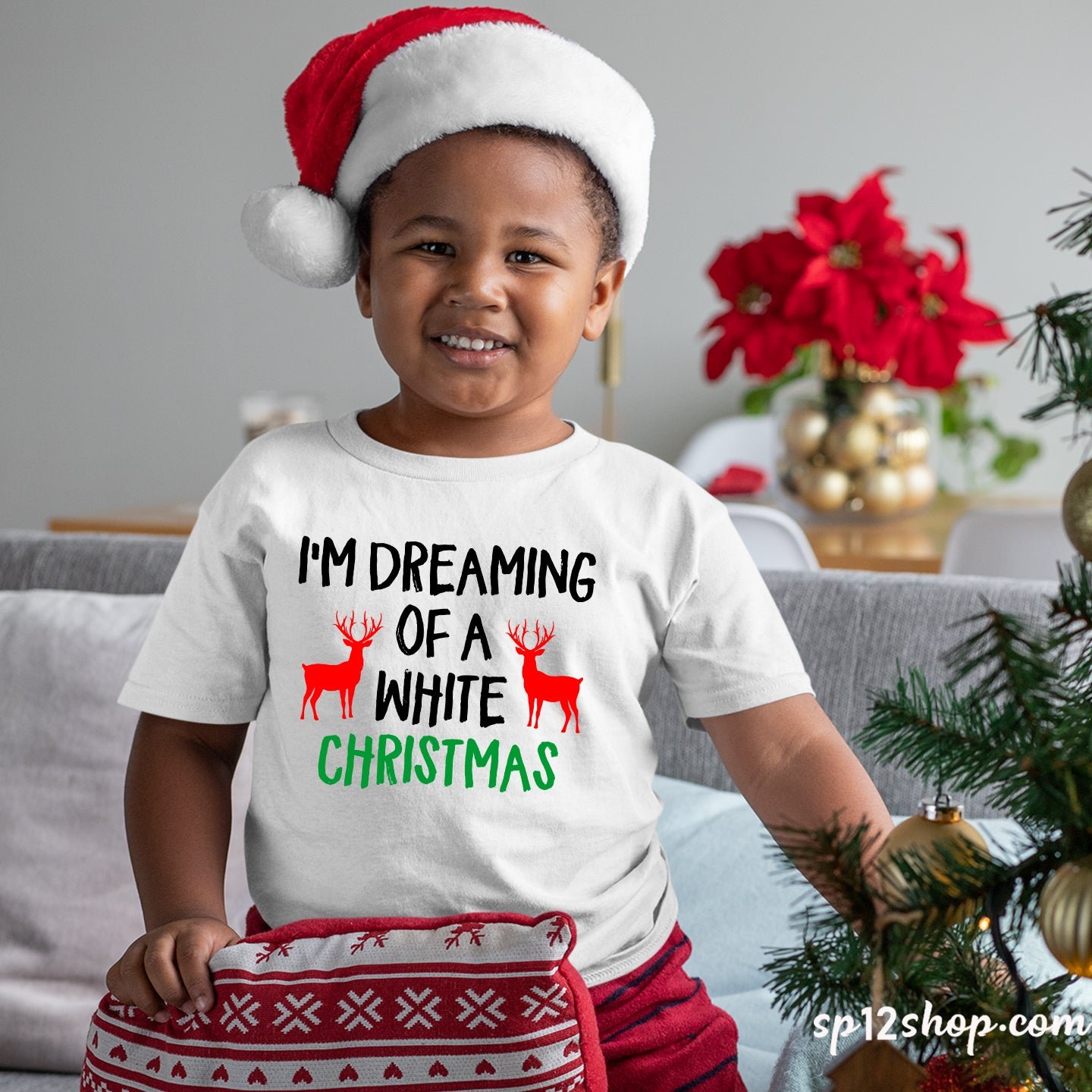 Dreaming a White Christmas Family Kids T-Shirt Tee