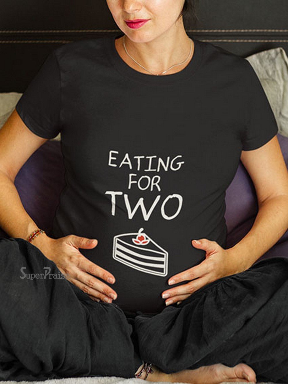 Pregnancy Maternity T Shirts Eating For Two Cake Slogan Joke