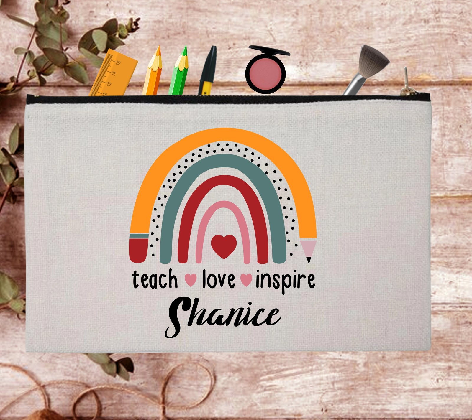 Elementary School Teacher Custom Teaching Heart Pouch Bag Pencil Case is made with polyester and has a natural look. This quality and durability bag can be used for stationery, cosmetics, brushes, stickers, headsets, coins, cash, cards, and other accessories you need. Easy smooth zip closure bag is suitable for everyone to use in school, office, and travel.