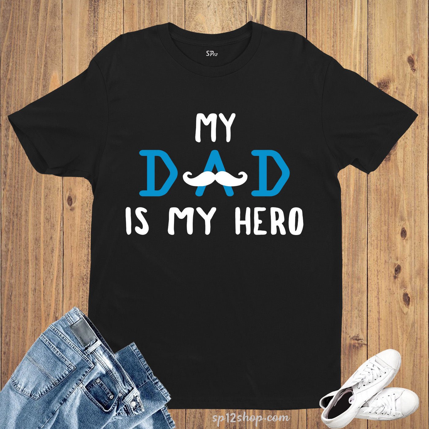 Family Slogan Fathers Daddy T Shirt My Dad Is My Hero