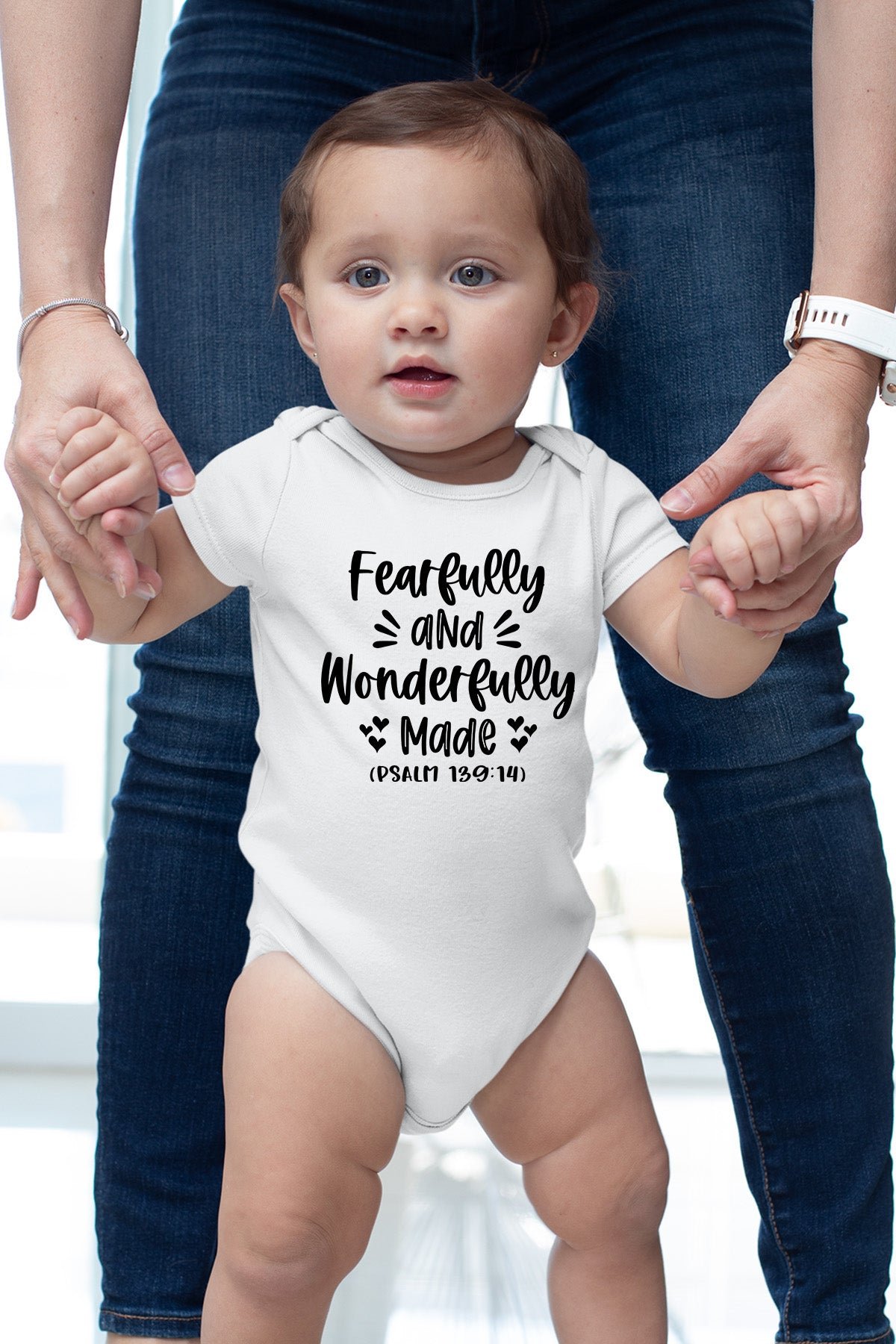 This Fearfully and Wonderfully Made Psalm 139:14 Baby Onesie is a gentle reminder of the special and unique child your little one is. Made with soft cotton, it provides comfortable and breathable wear for your baby. The inspiring message adds a touch of positivity and love to your child’s wardrobe. Let your little one know they are truly one-of-a-kind.