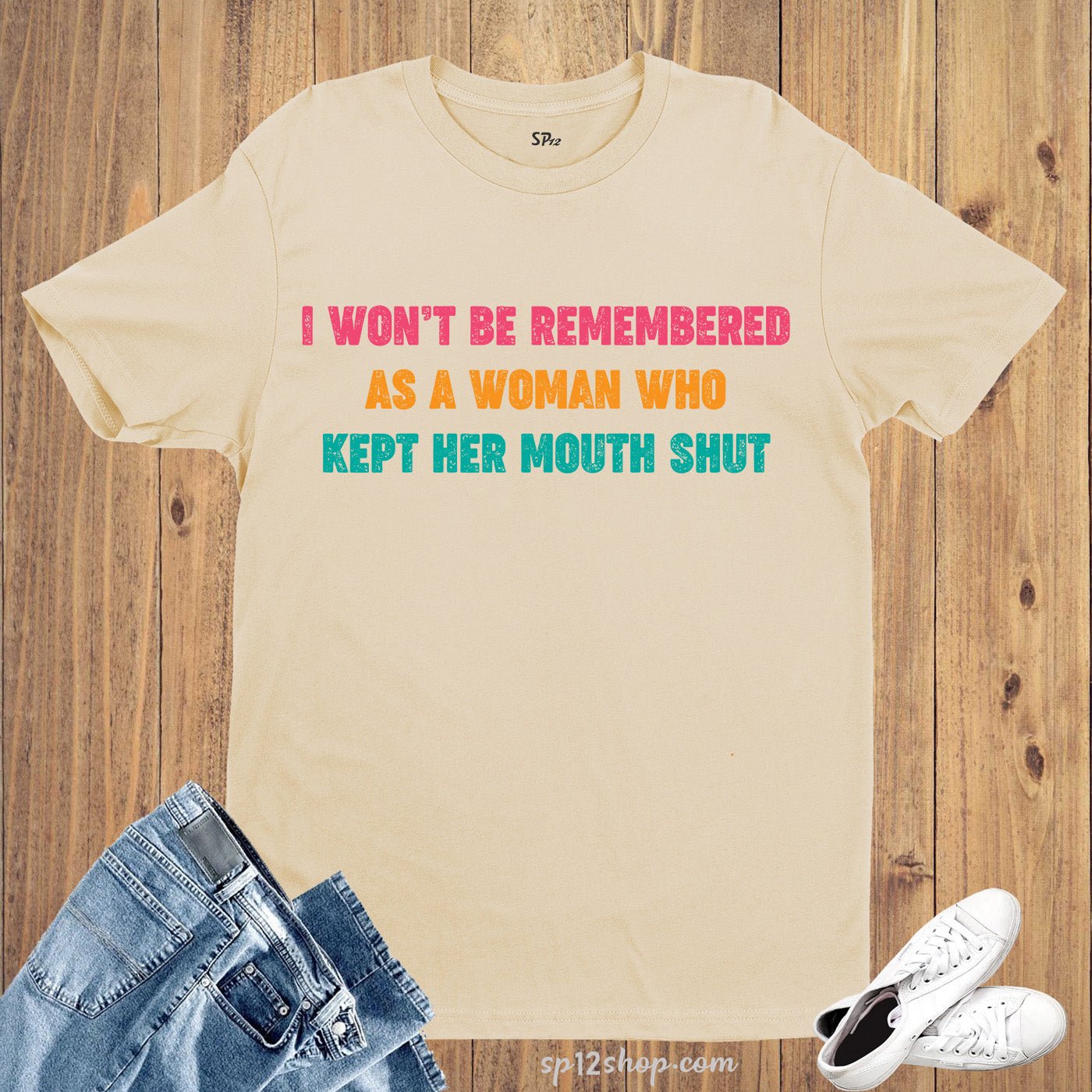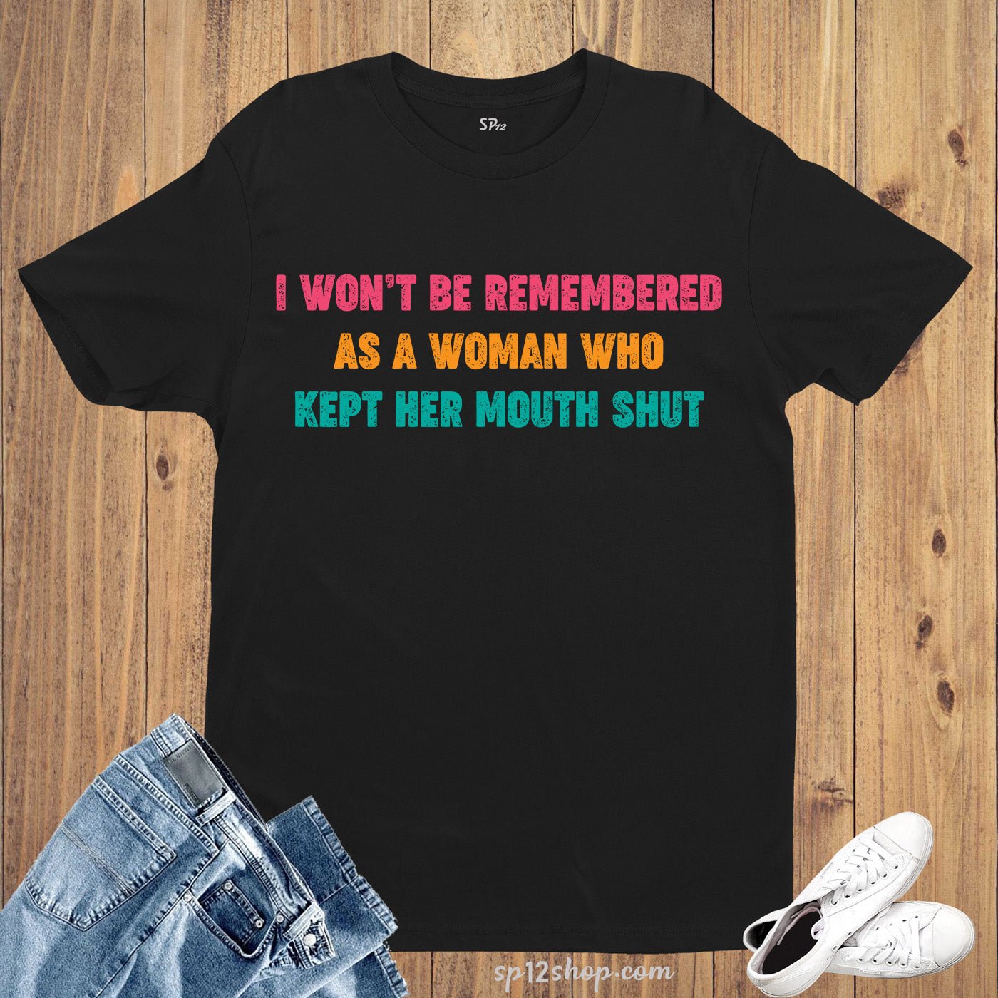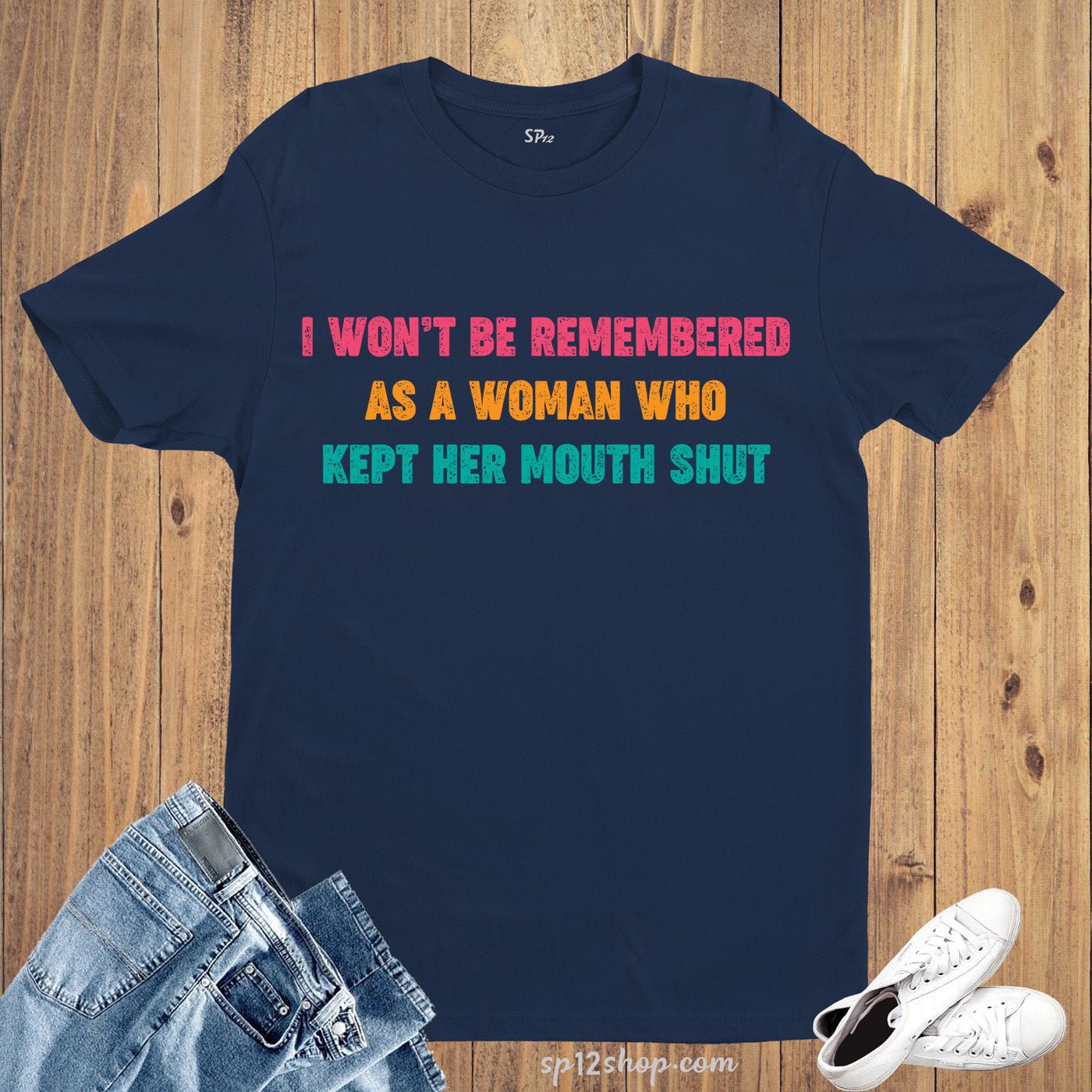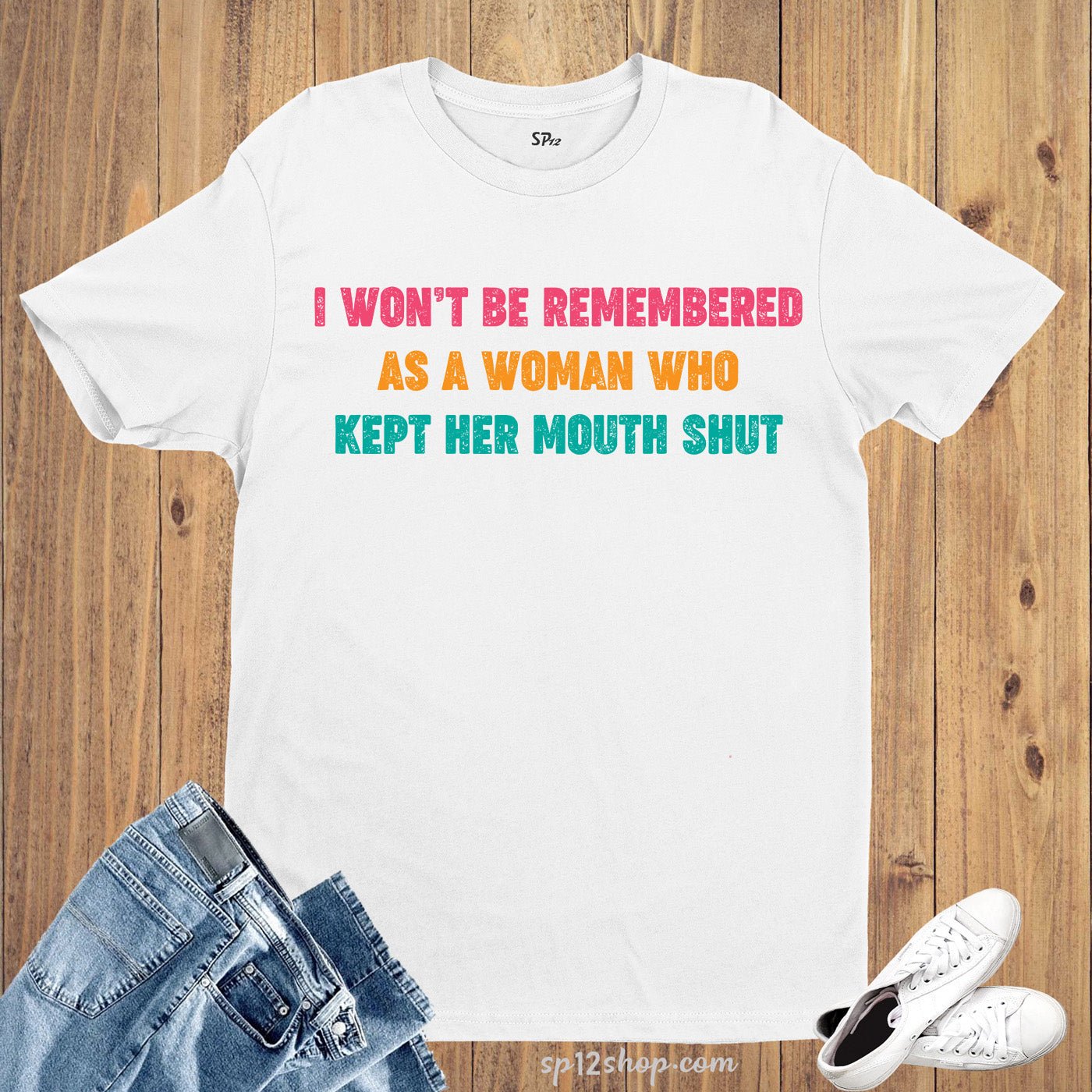 Stand up for gender equality with our Feminist Shirts “I Won’t Be Remembered As A Woman Who Kept Her Mouth Shut” Tees. Embrace your voice and empower others to do the same. Expertly crafted with high-quality materials for a comfortable fit. Join the movement and make your mark.