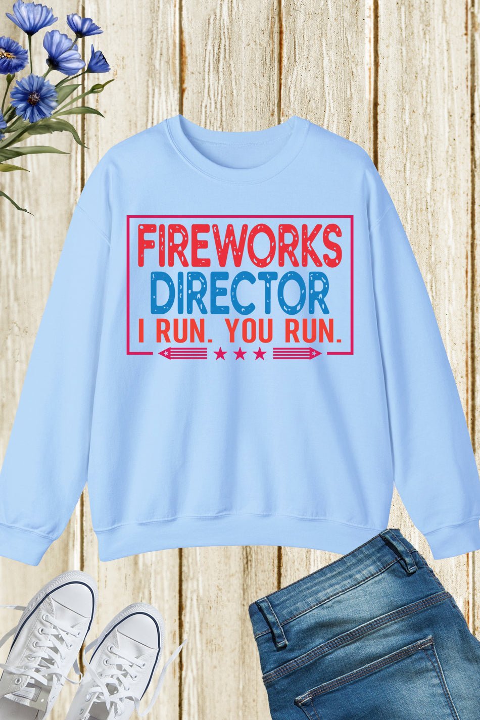This Fireworks Director Funny 4th Of July Sweatshirt is perfect for any Independence Day celebration! With its humorous design and comfortable fit, it will make a great addition to your holiday wardrobe. Show off your sense of humor and love for fireworks with this sweatshirt!