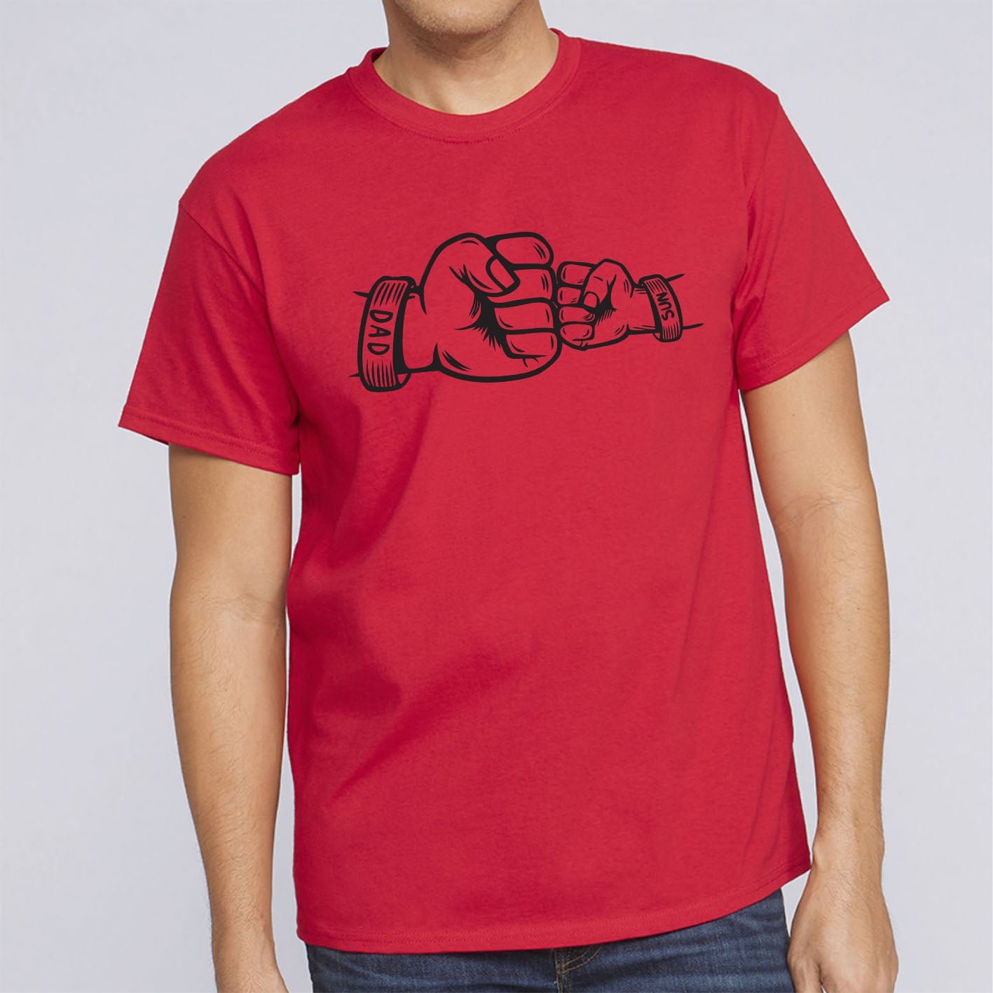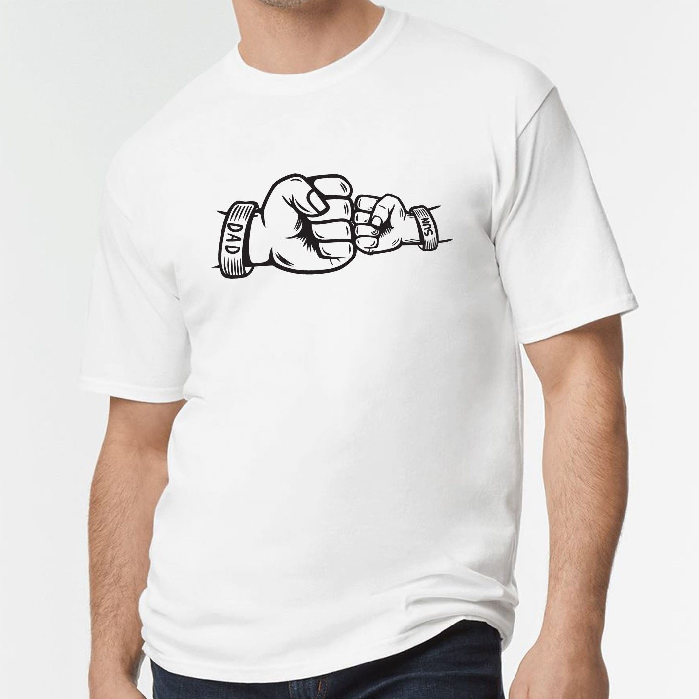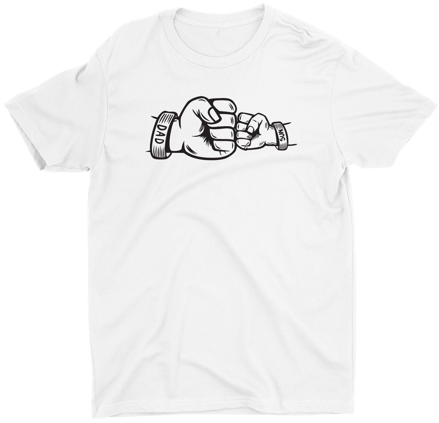 Fist Bump Dad and Son Custom Name Short Sleeve Fathers Day T-Shirt